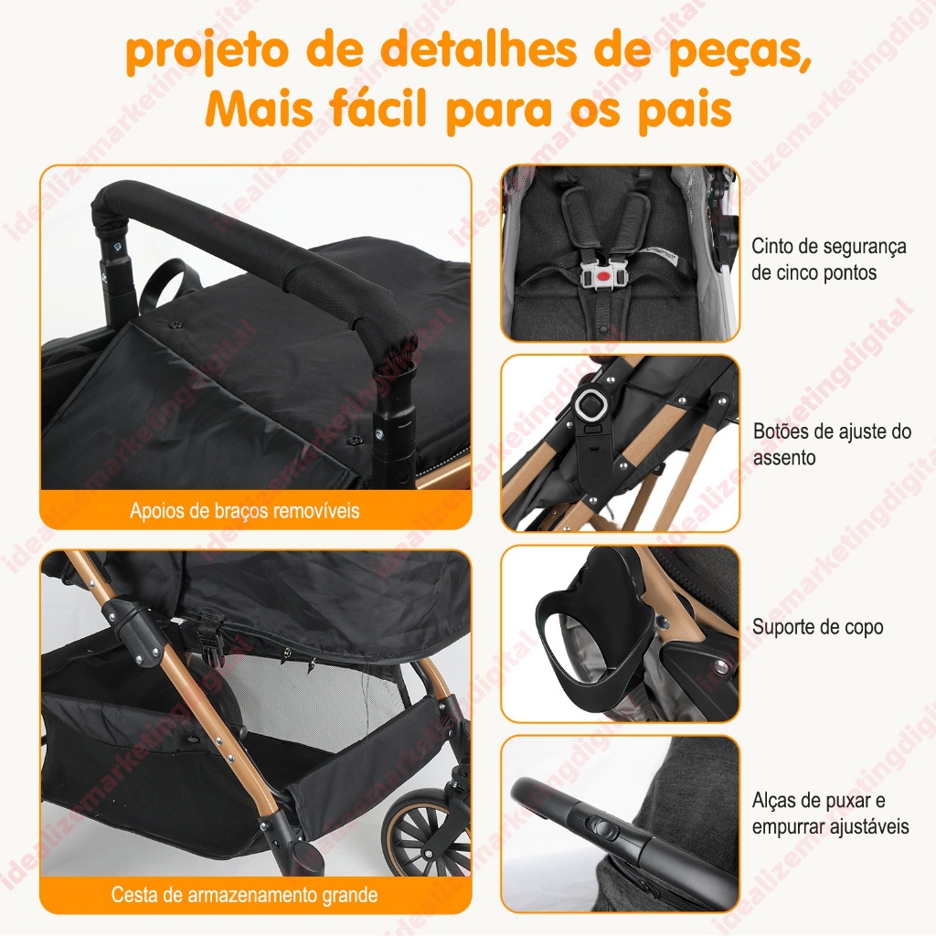 Carrinho De Bebê Passeio Alça Reversível System Até 15 Kg