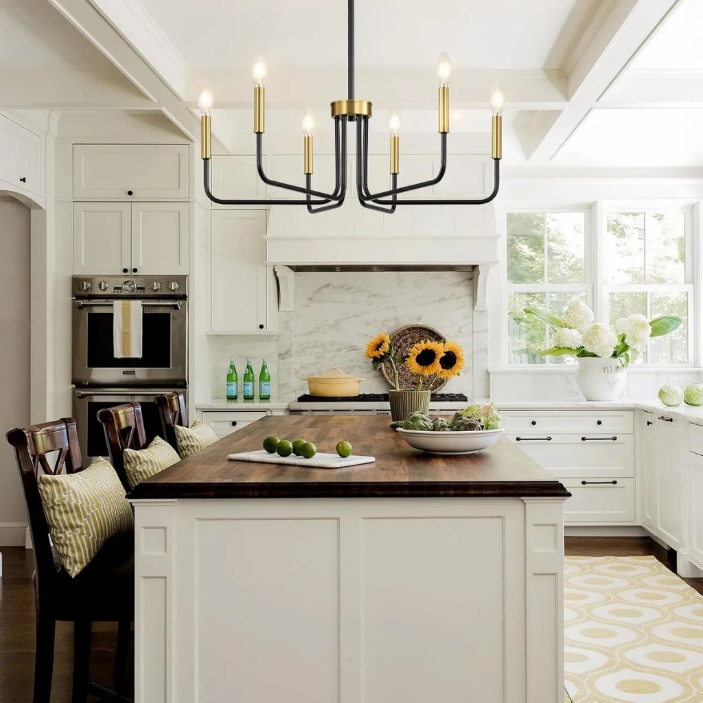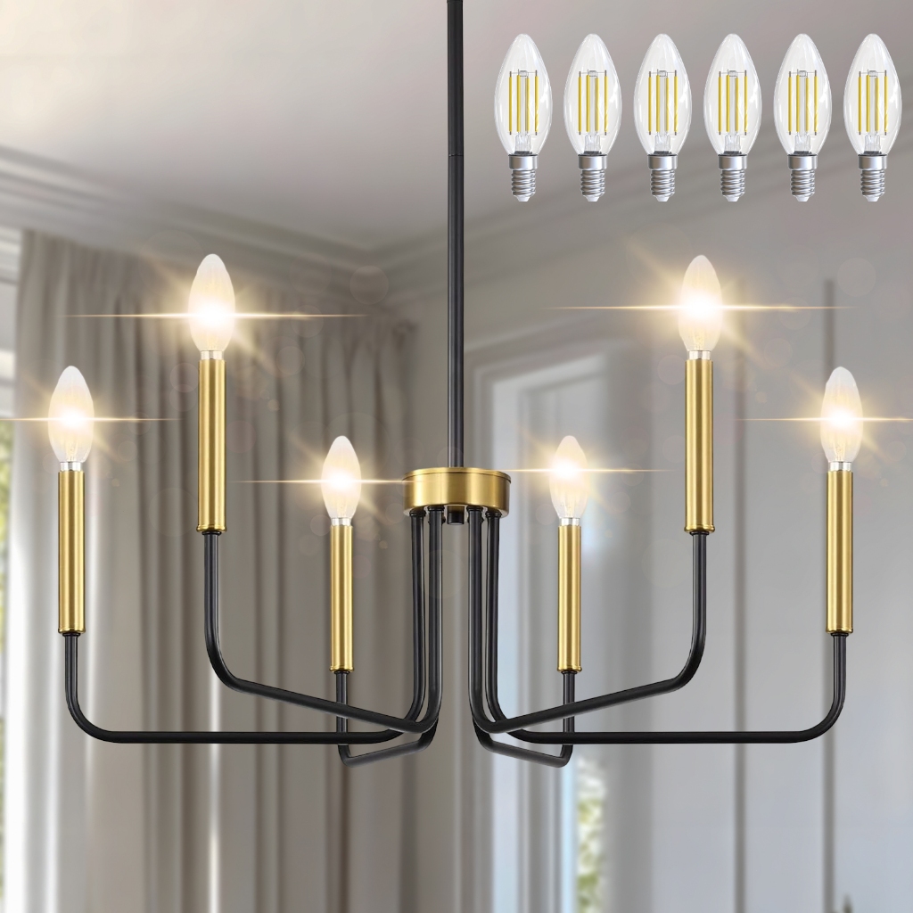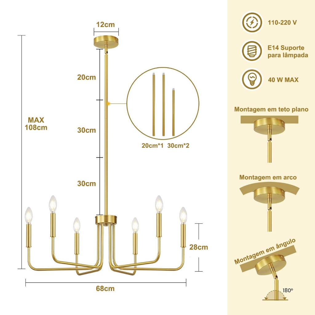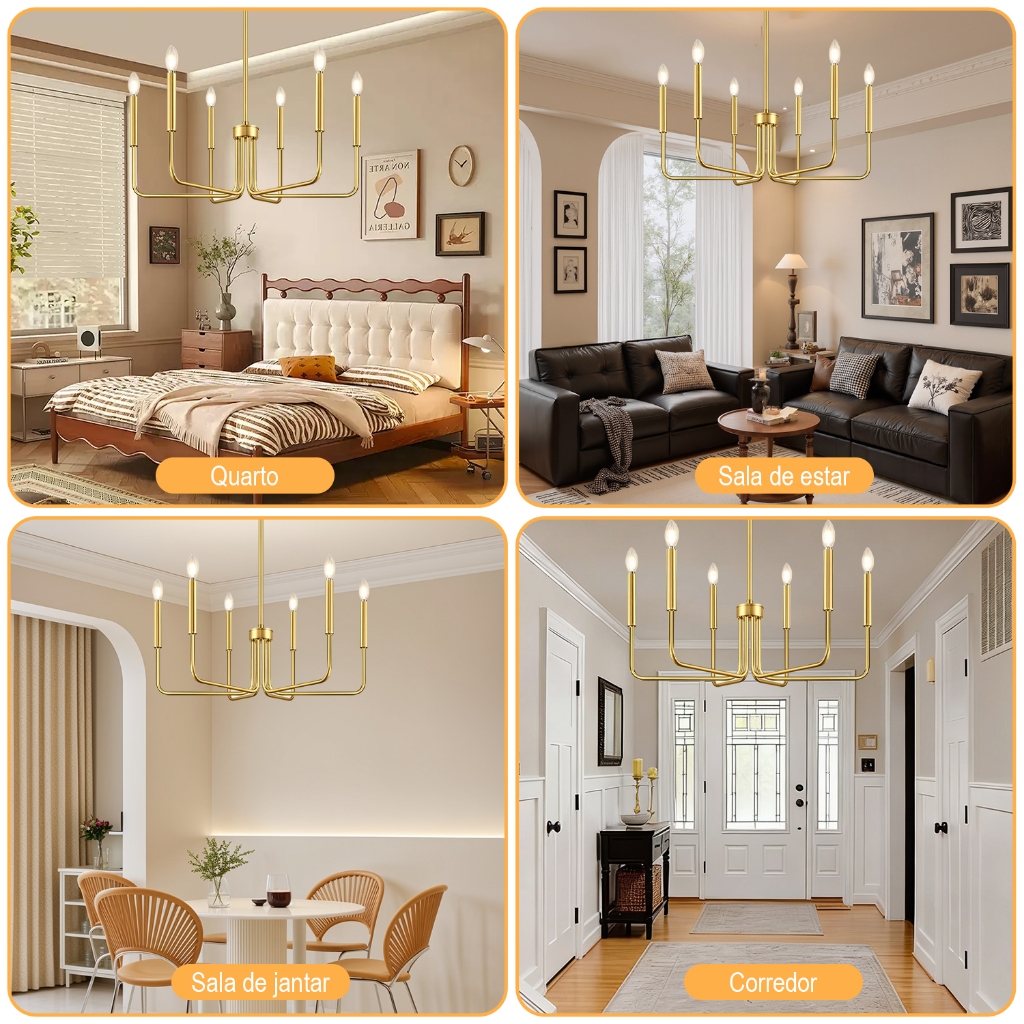 Lustre Vintage Luminária De Teto 6 Lampada Latão Vela 110/220v Ouro/Preto