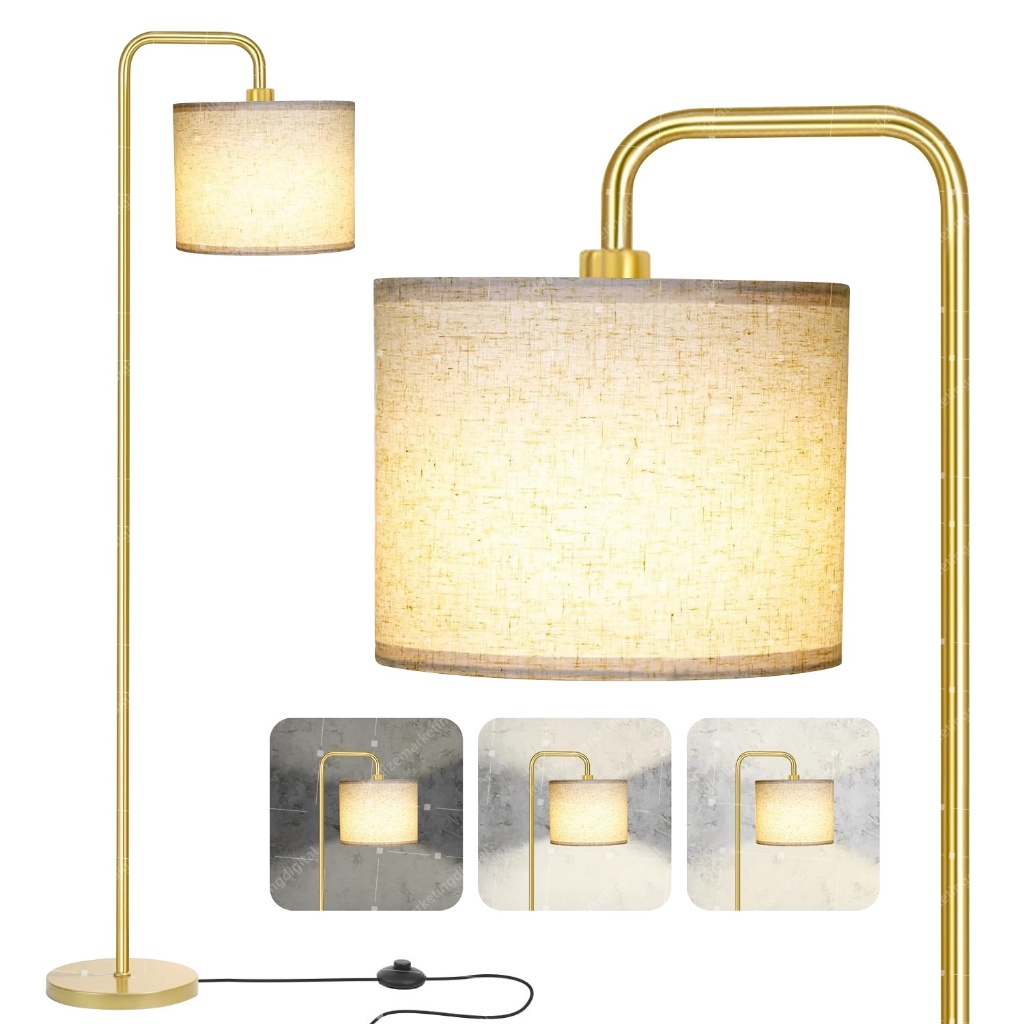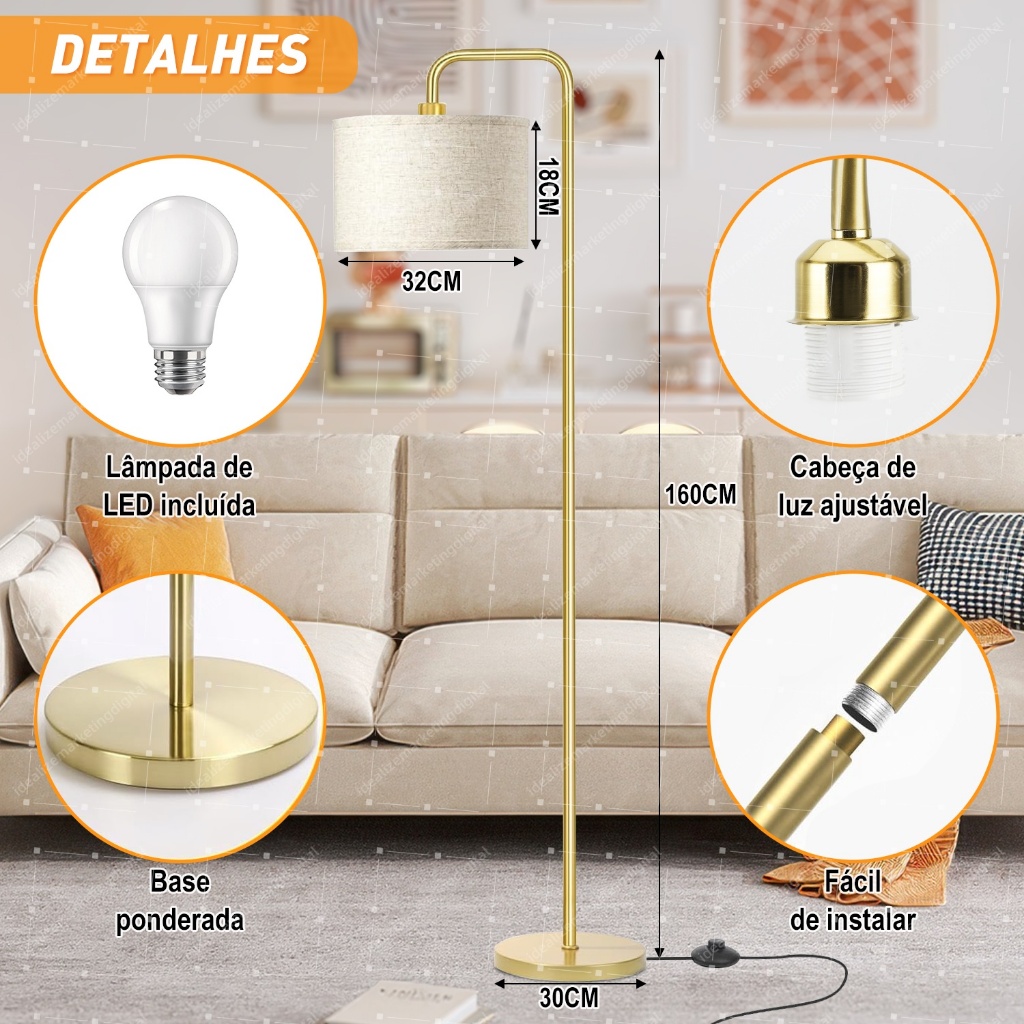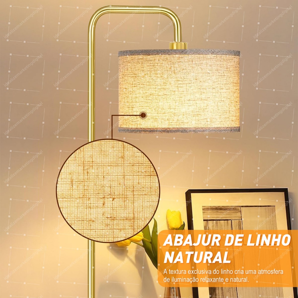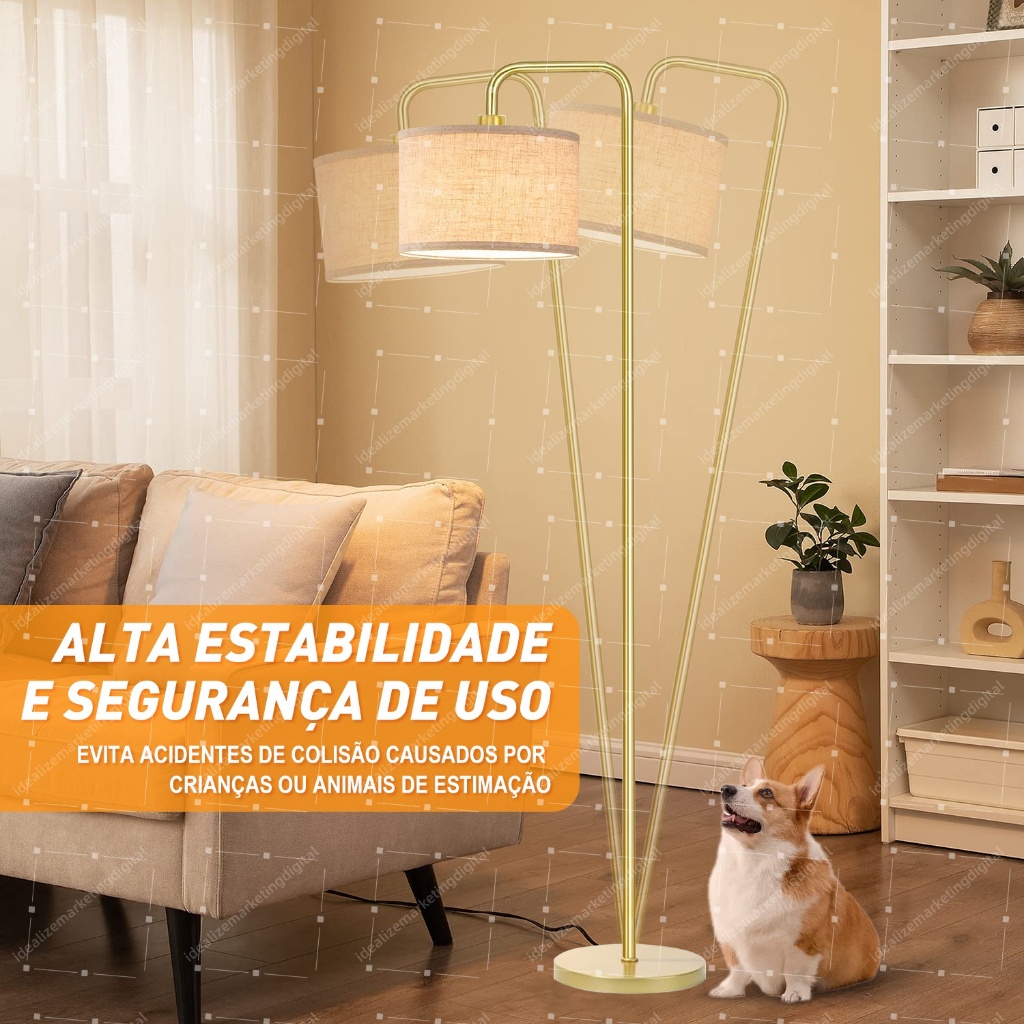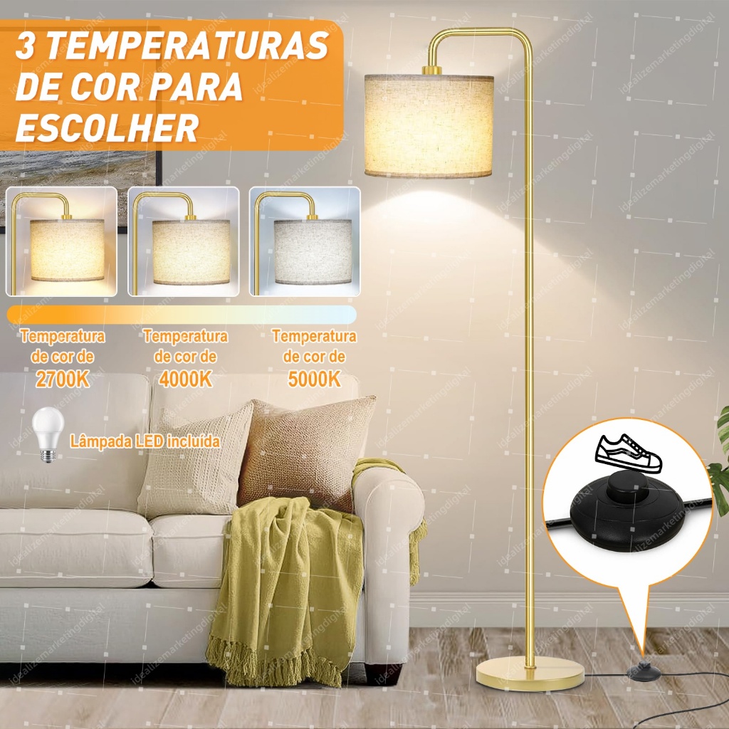 Luminária De Chão 1,60m Abajur Leitura Piso Dourado 110/220v Bivolt