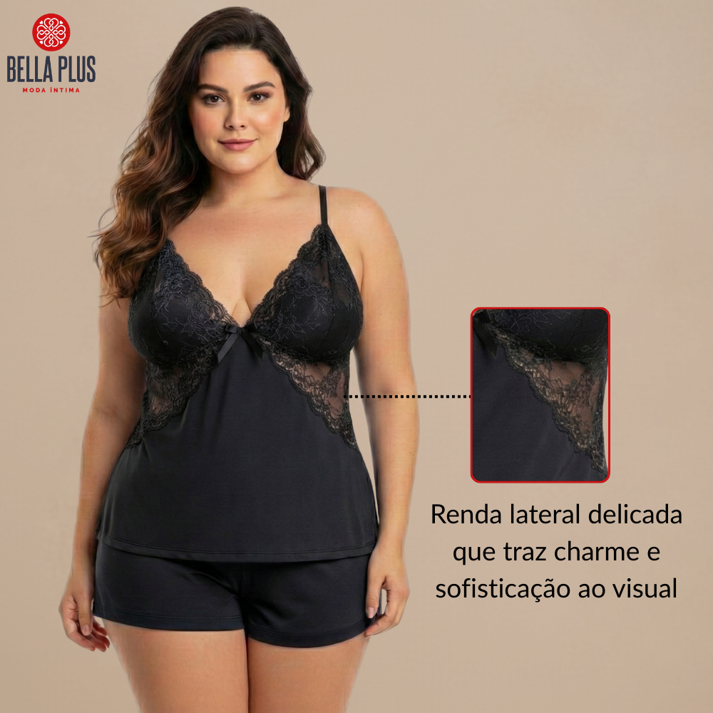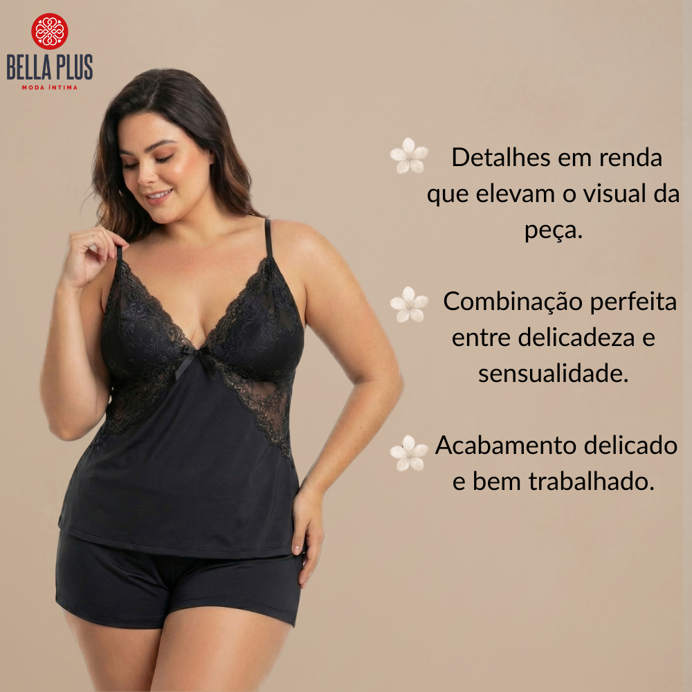 Babydoll Plus Size Pijama Conforto Renda Noite Dormir Microfibra