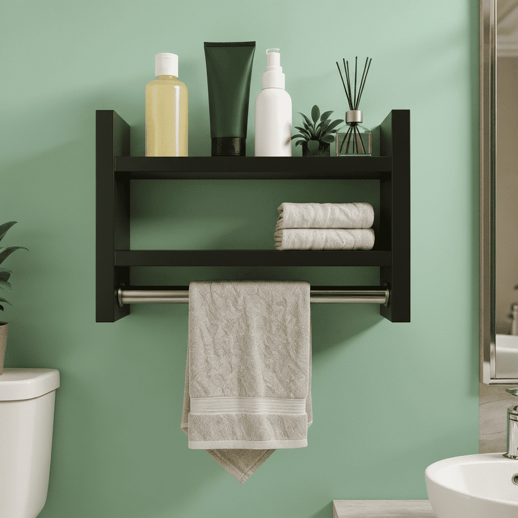 Nicho Porta Toalha Branco Preto Com Prateleira Organizadora de Parede Tubo Metal P/ Banheiro
