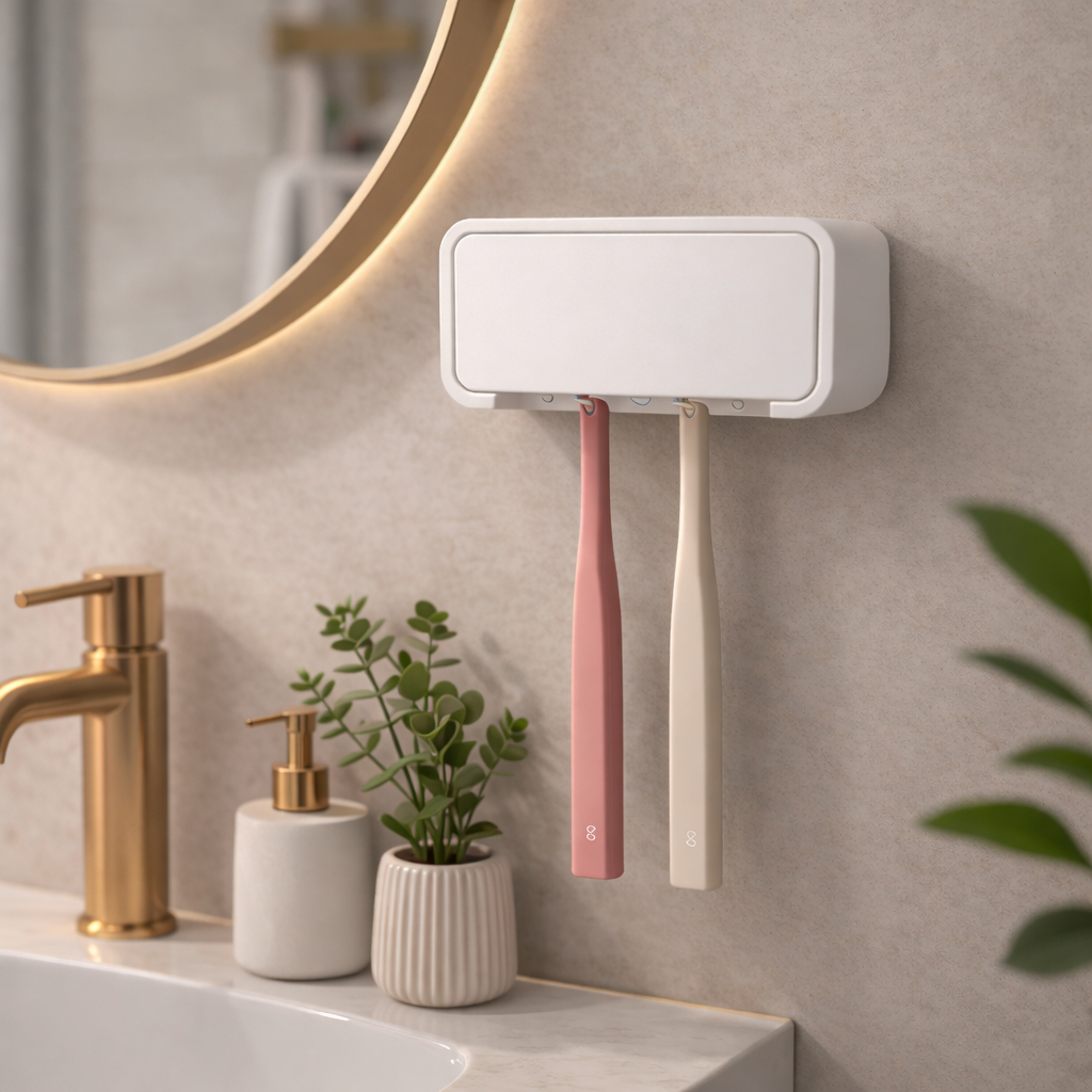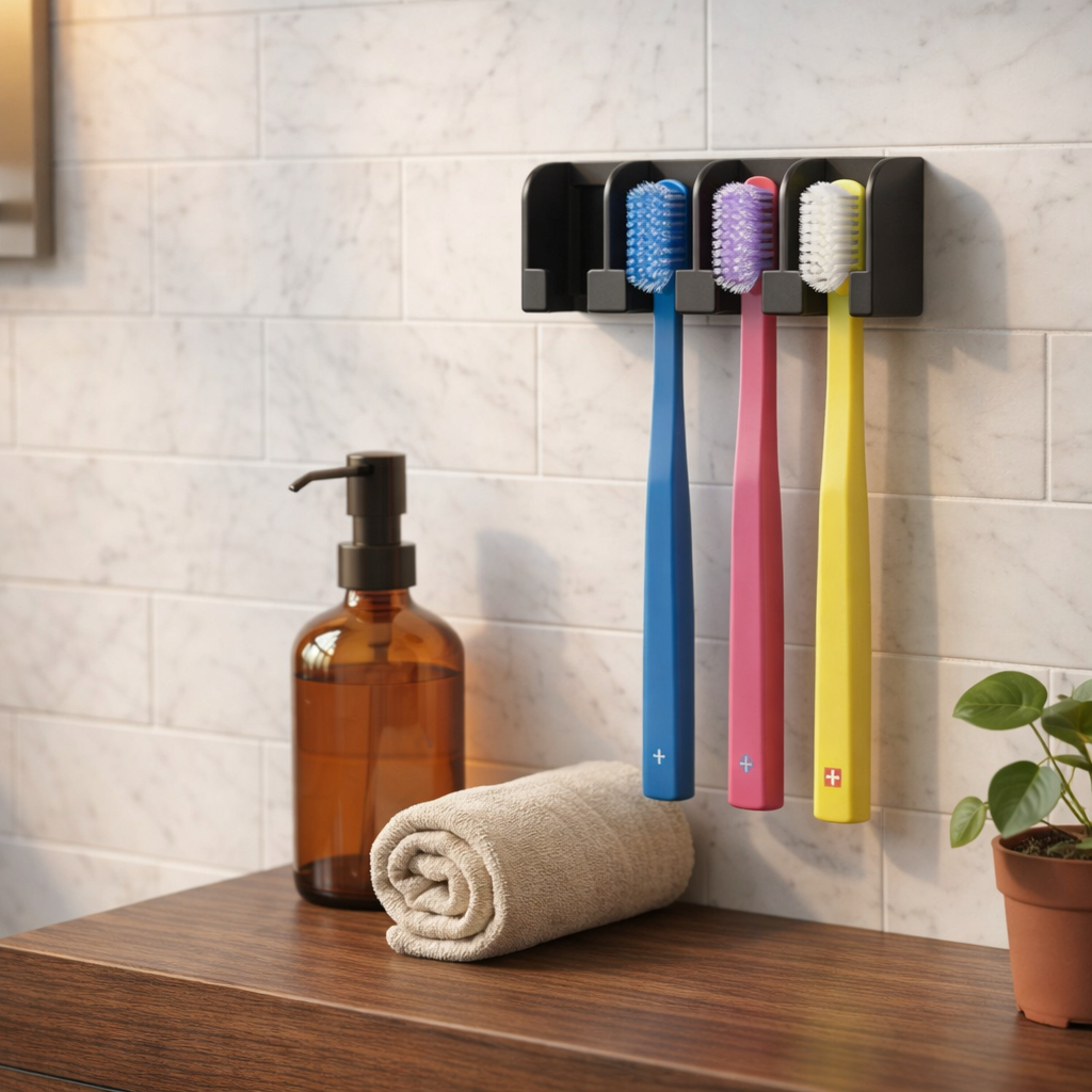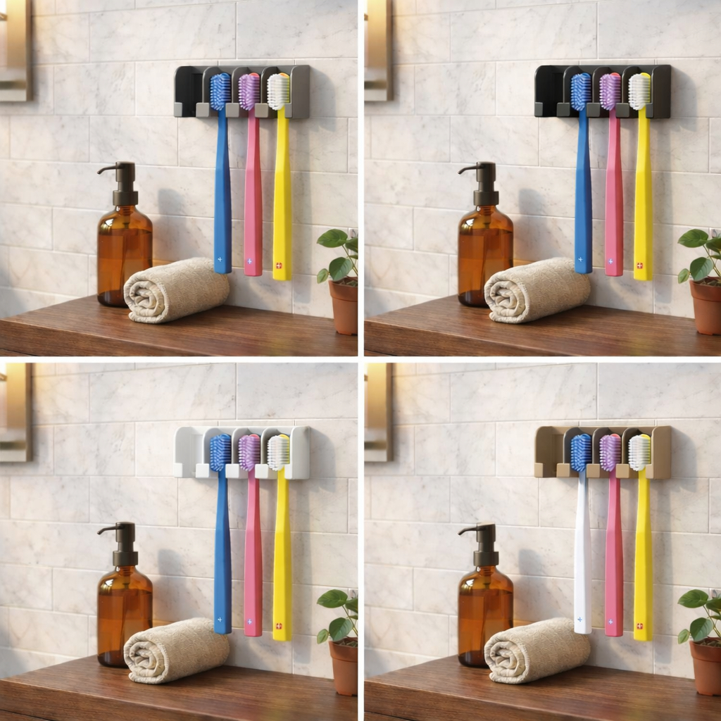 Porta Escovas de Dente de Parede sem Furos | Suporte para 4 Escovas com Fita Dupla Face