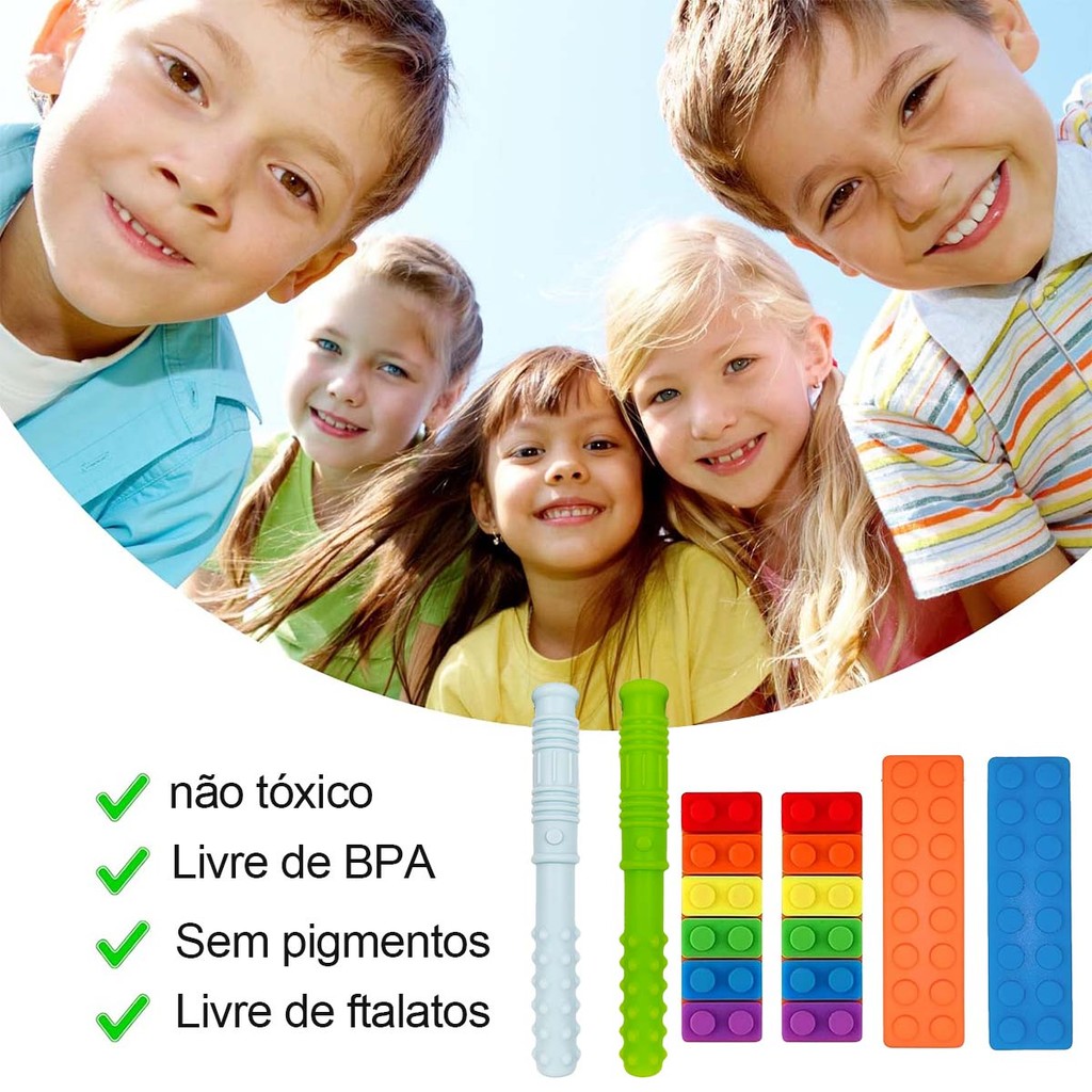 Conjunto de 6 peças de lápis sensorial, colar de mordida/autismo, ferramenta de mastigação sensorial, tratamento, brinqu