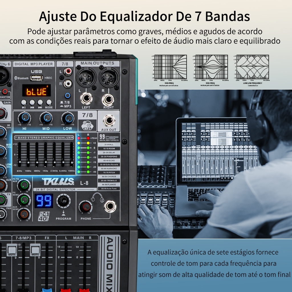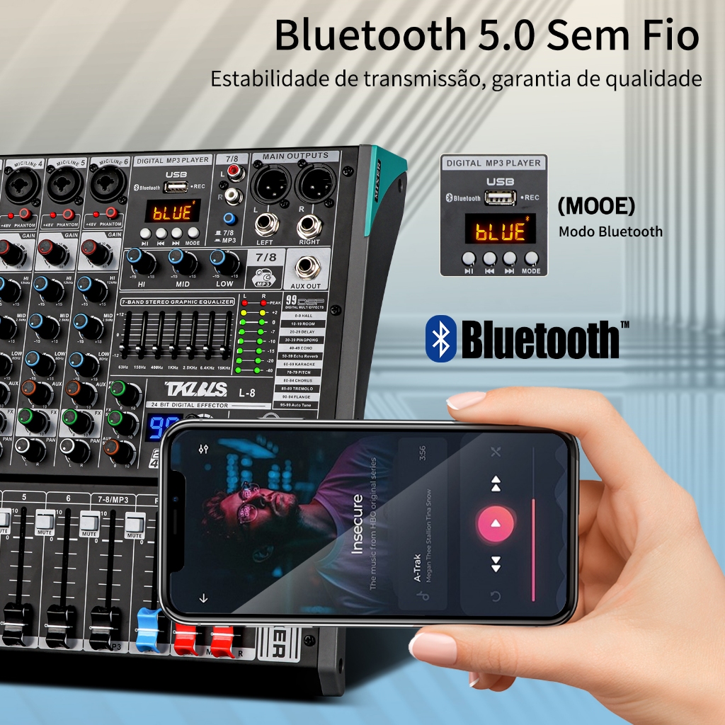 Mesa de som 8/12/16 channel profissional audio mixer equalizador 99 Effect Bluetooth computador USB 48V de Phantom TKL