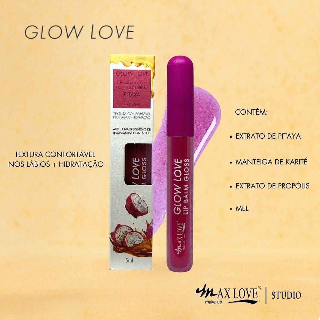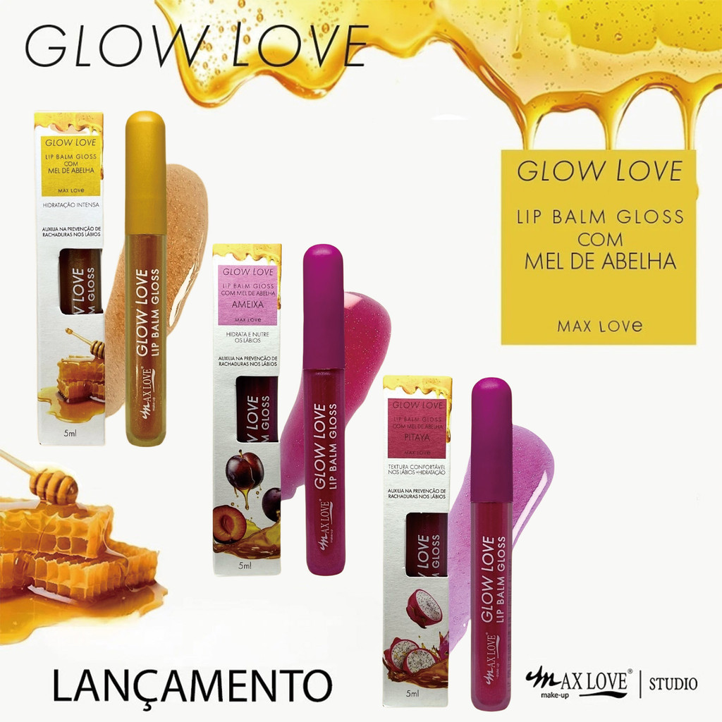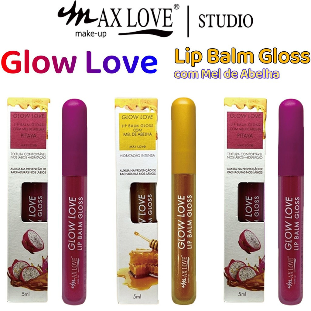 Kit Lip Balm Max Love Glow Love – Mel, Ameixa e Pitaya – Hidratação Profunda com Brilho Natural – 5ml cada