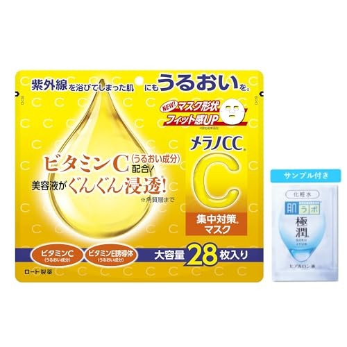 Melano CC Concentrated Treatment Mask - 28 Large Sheet Masks with Vitamin C & E Derivatives + Ultra Moisturizing Hyaluro
