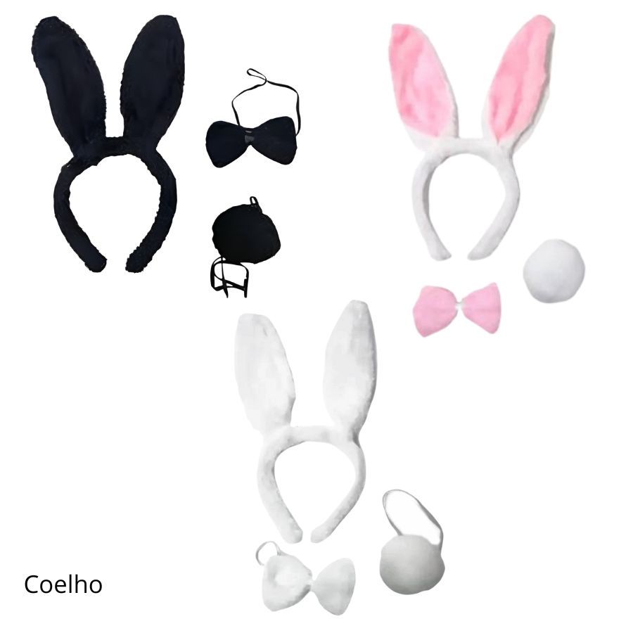 Tiara Fantasia Carnaval Eventos Rabinho Gravata Coelho Gato Tigre Onça Diabinha Anjo Pelúcia Rápida