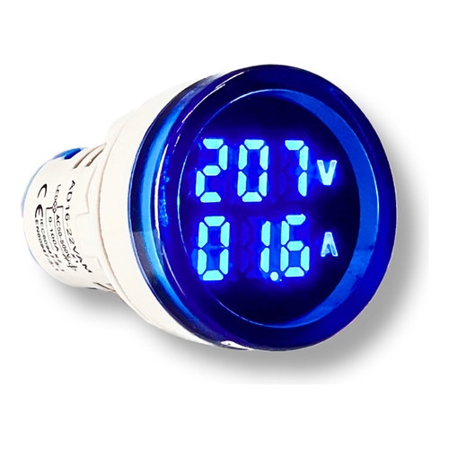 Indicador Amperímetro E Voltímetro 100a 22mm Ad16-22vam Azul