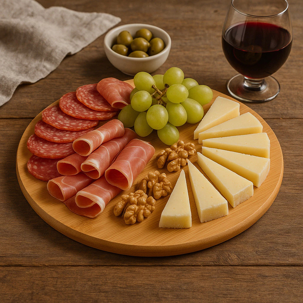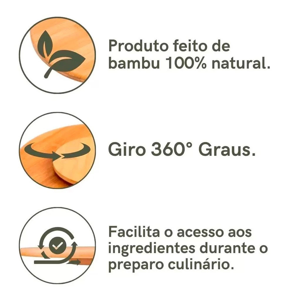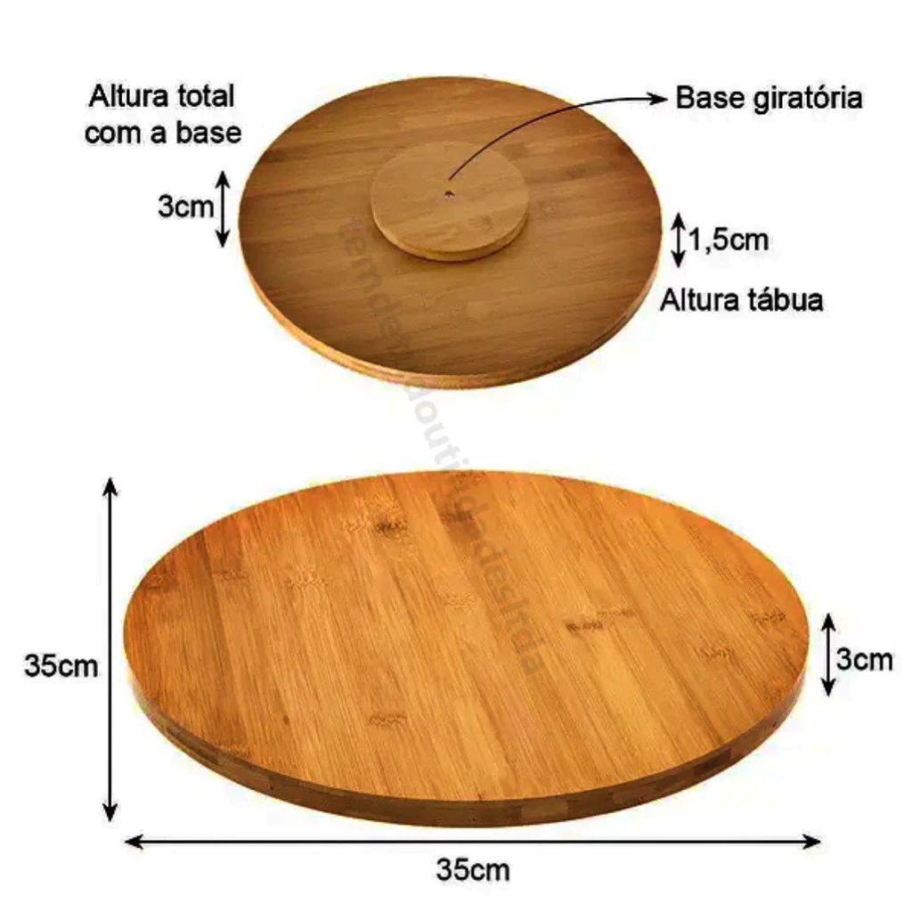 Tábua de Frios Giratoria Petiscos Corte em Bambu com 35cm Multiusos 2025novo
