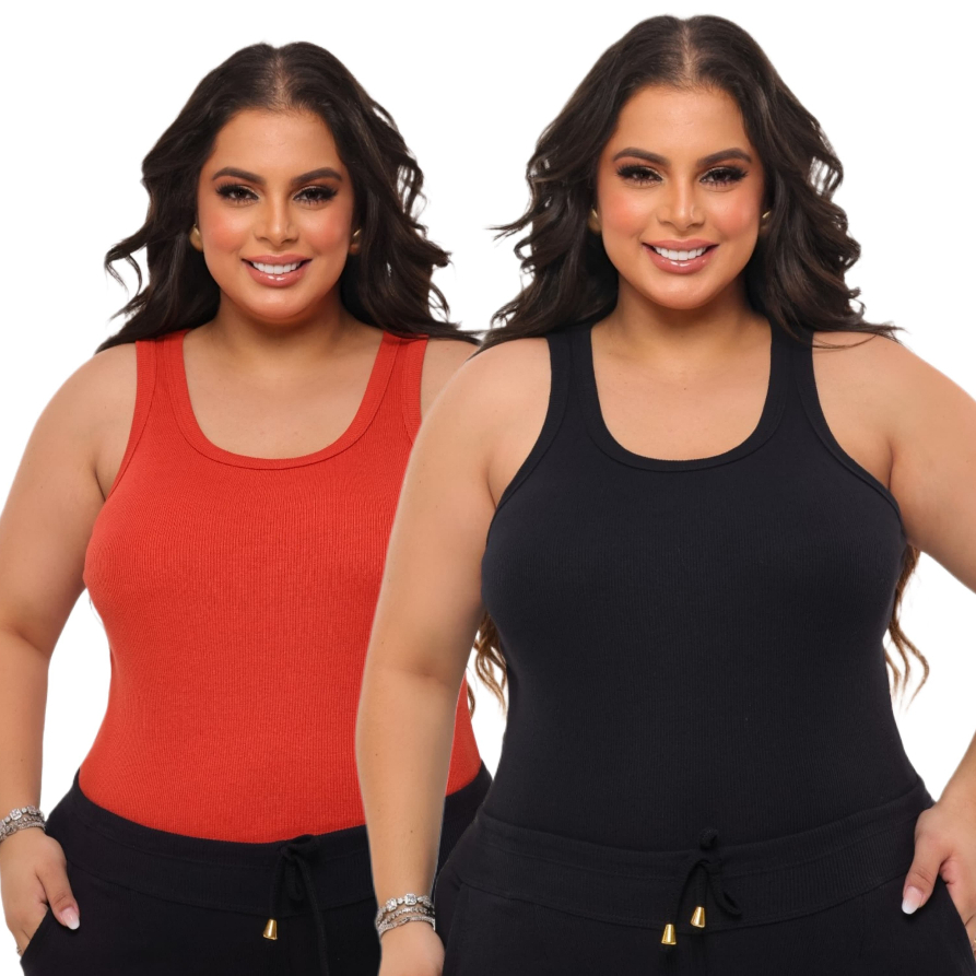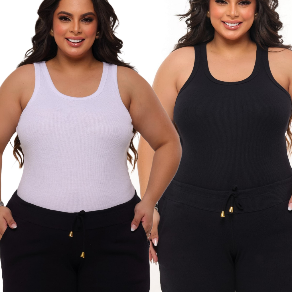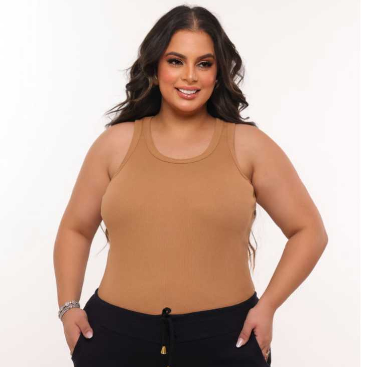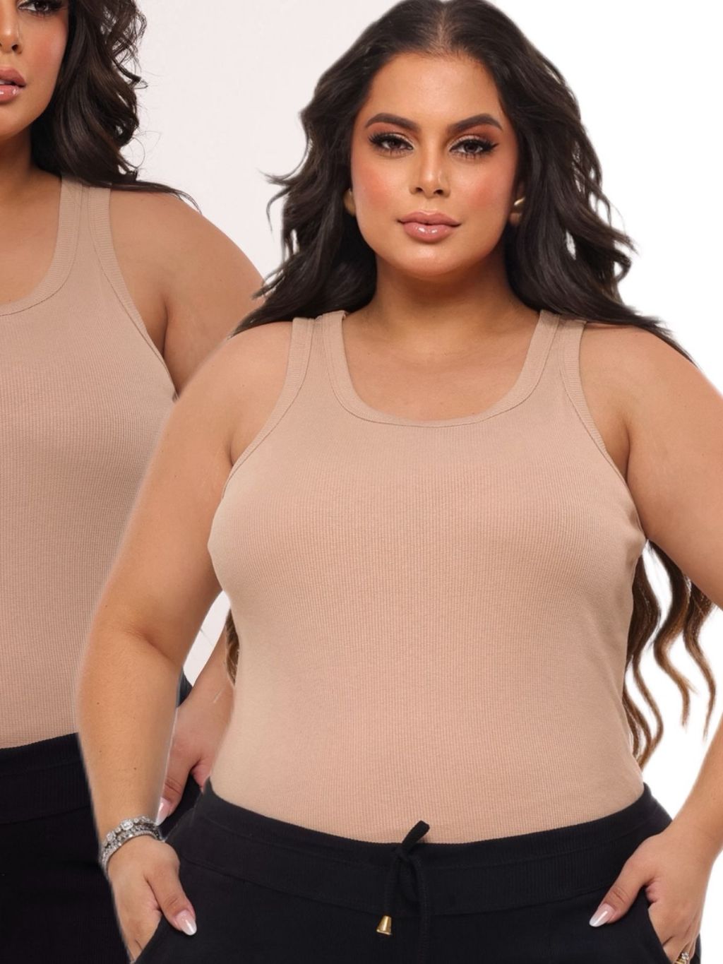 Regata Feminina Blusa Plus Size Canelada Algodão Premium Elastano Americana Caimento Perfeito