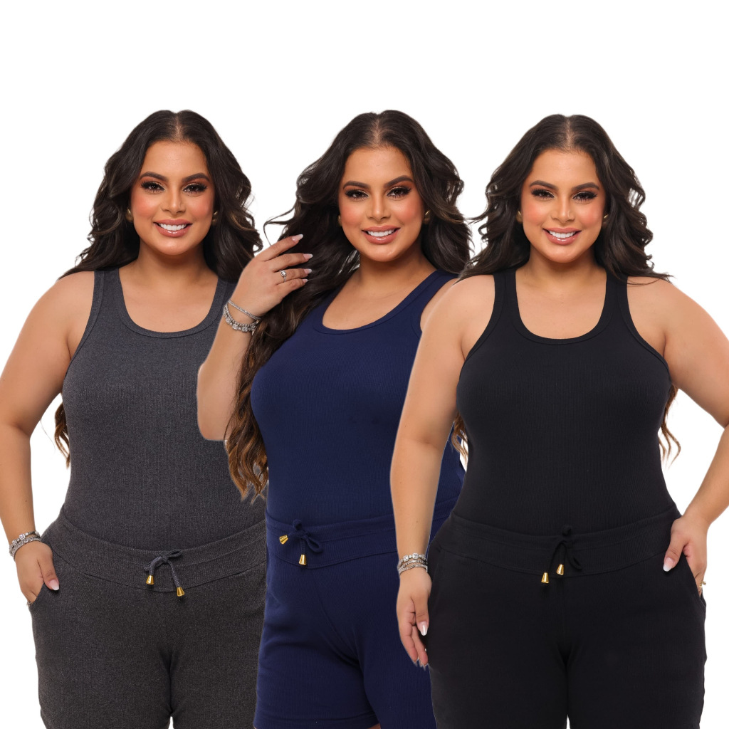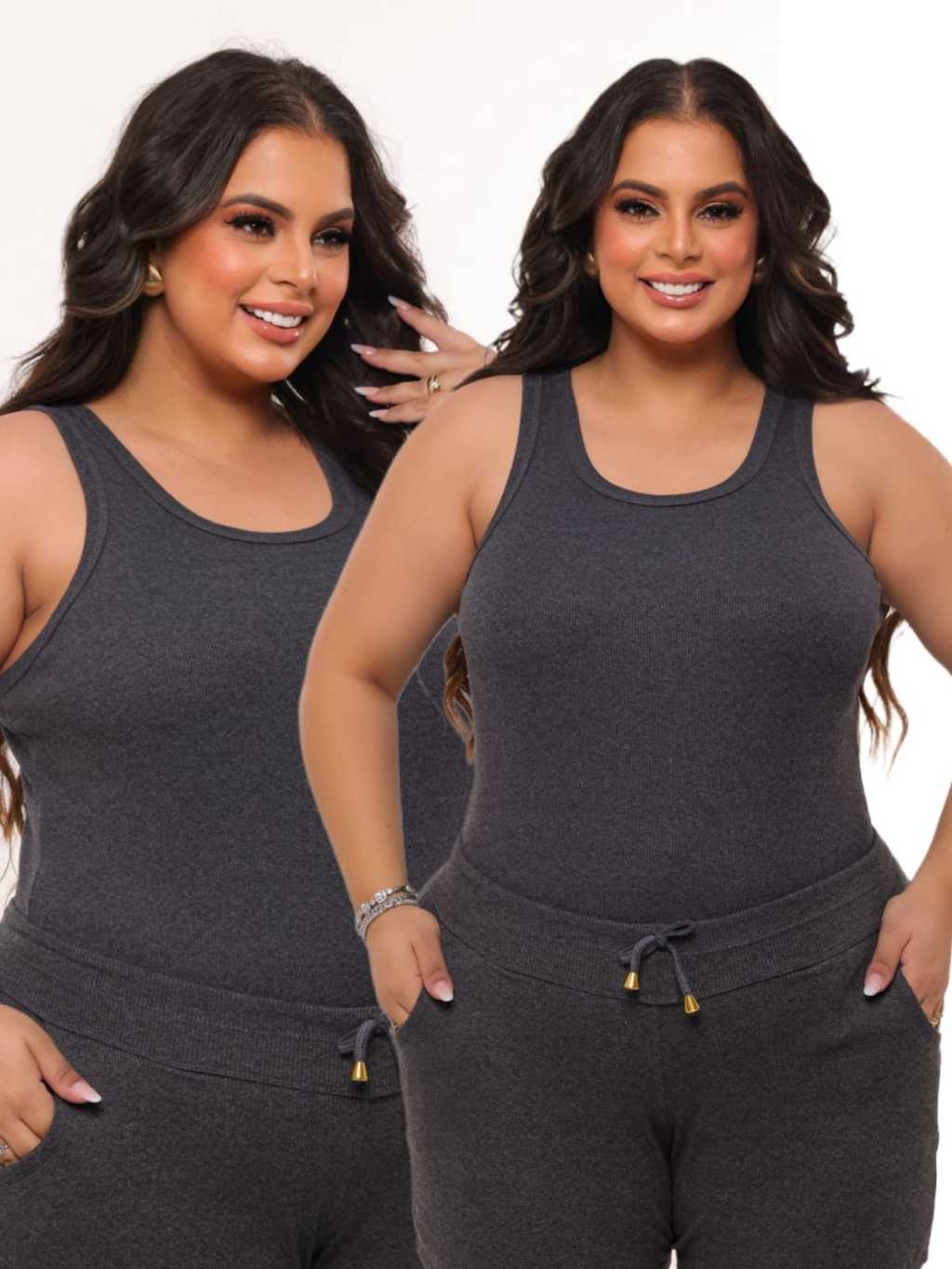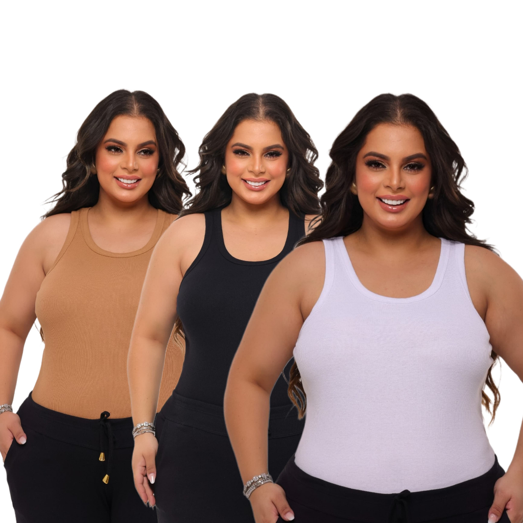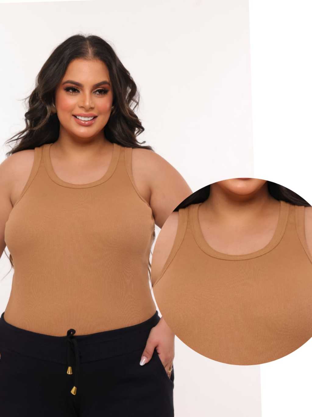 Regata Feminina Blusa Plus Size Canelada Algodão Premium Elastano Americana Caimento Perfeito