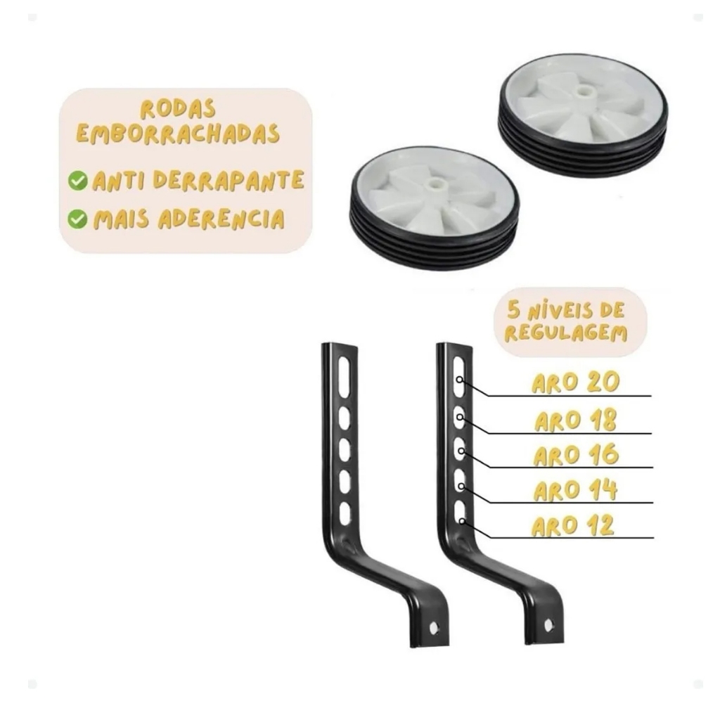 Roda Lateral Rodinha Aço Bicicletas Aro 20 16 14 12 Reforçada Bicicleta Infantil Criança