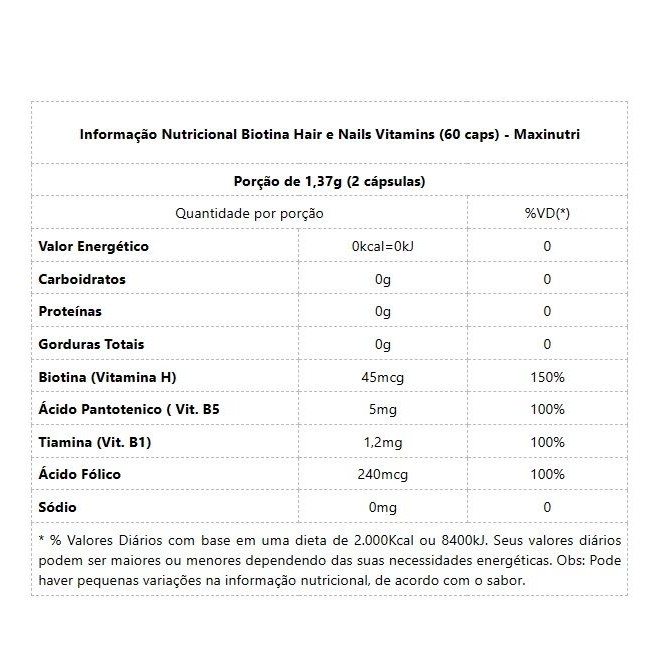 Biotina Hair e Nails Vitamins (60 caps) - Padrão: Único