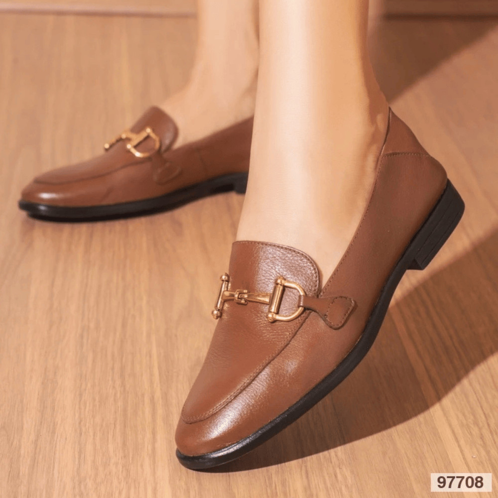 Mocassim loafer couro detalhede bridao palmilha confort linha boutique