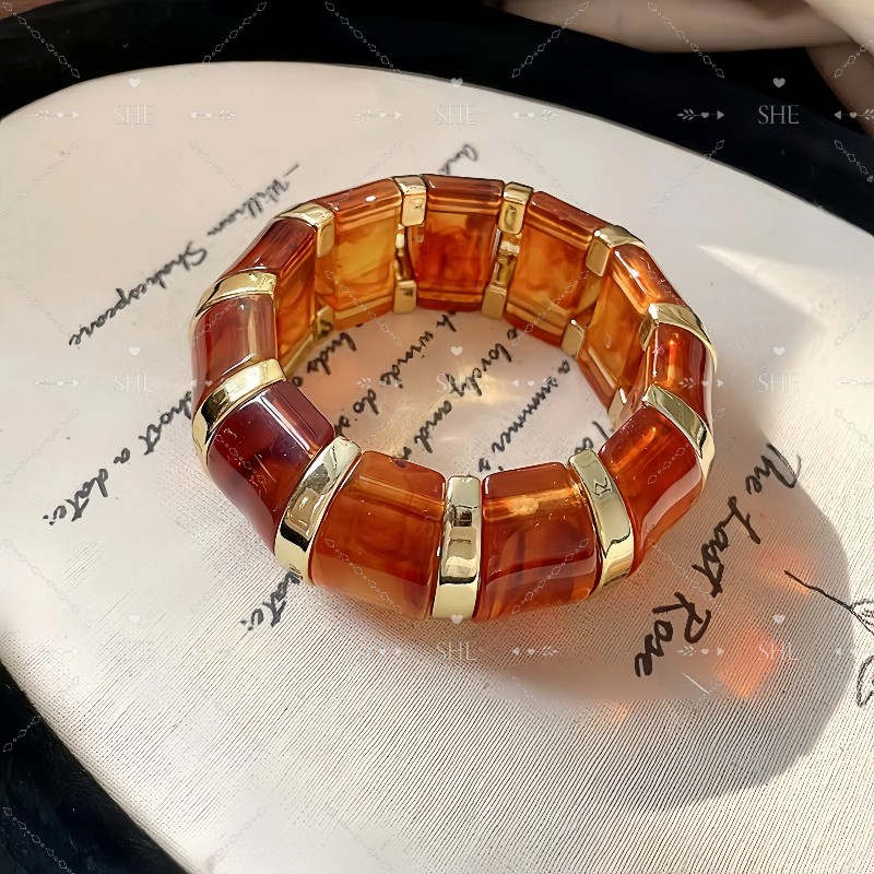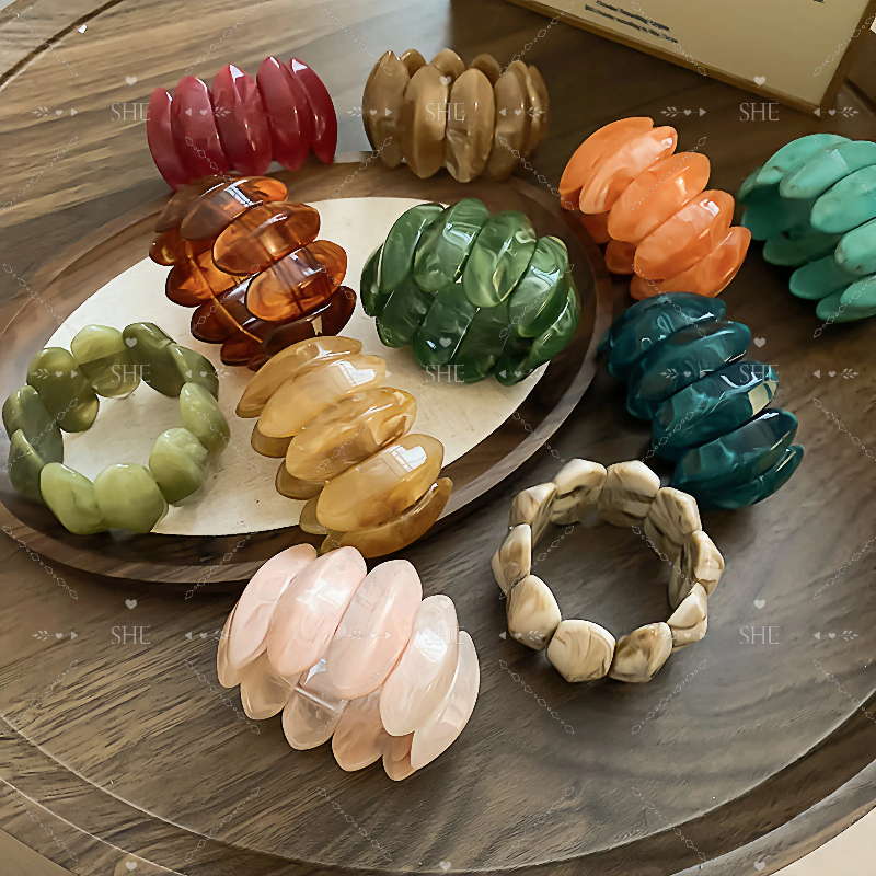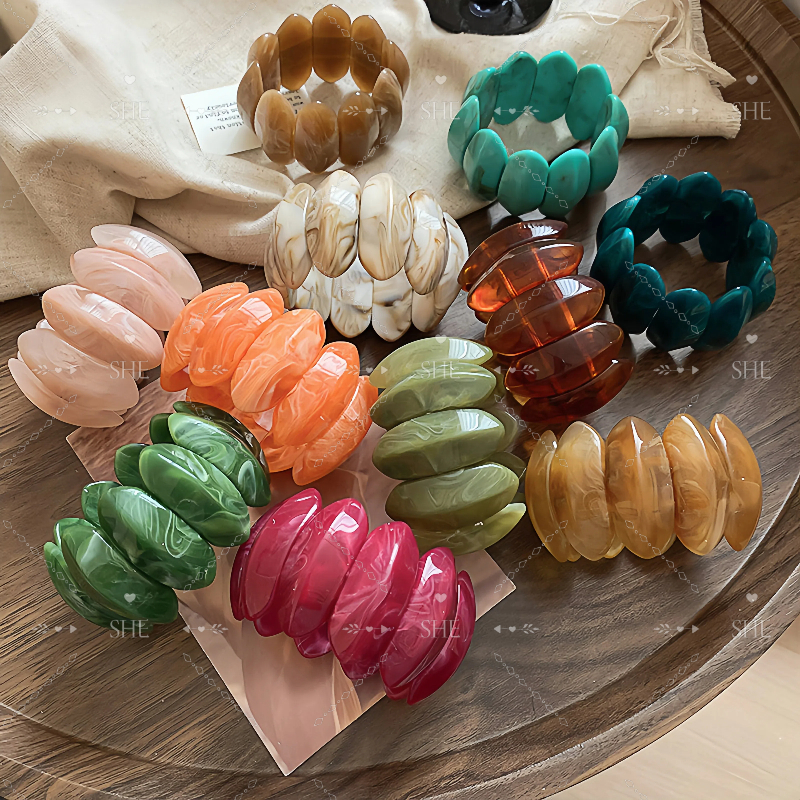 SHE - Pulseira elástica de acrílico oval borrada com nicho e design exclusivo