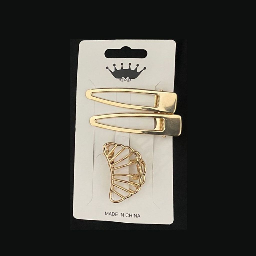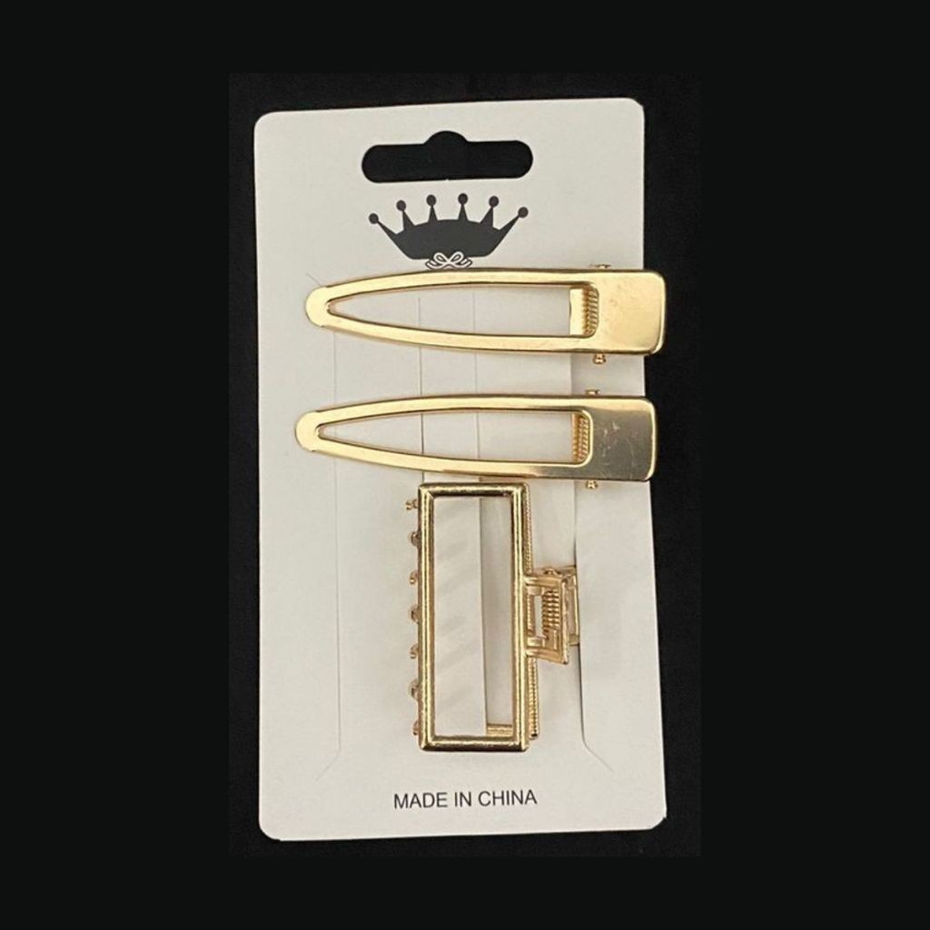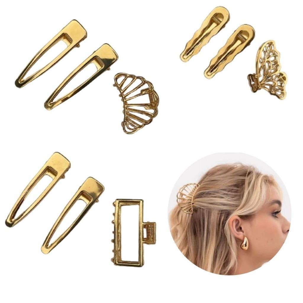 SHE - Kit 3 Presilhas de Cabelo Liga de Metal Dourado