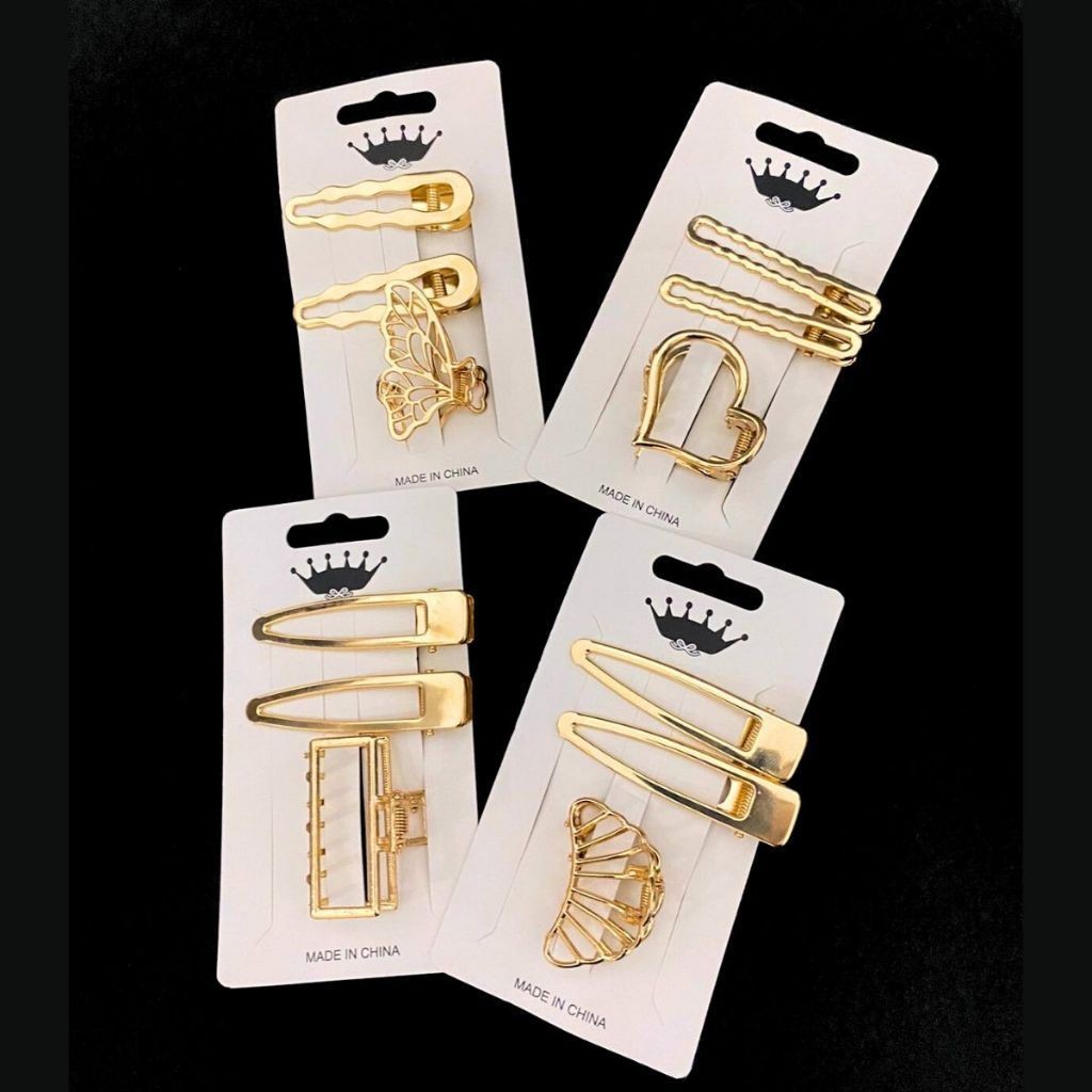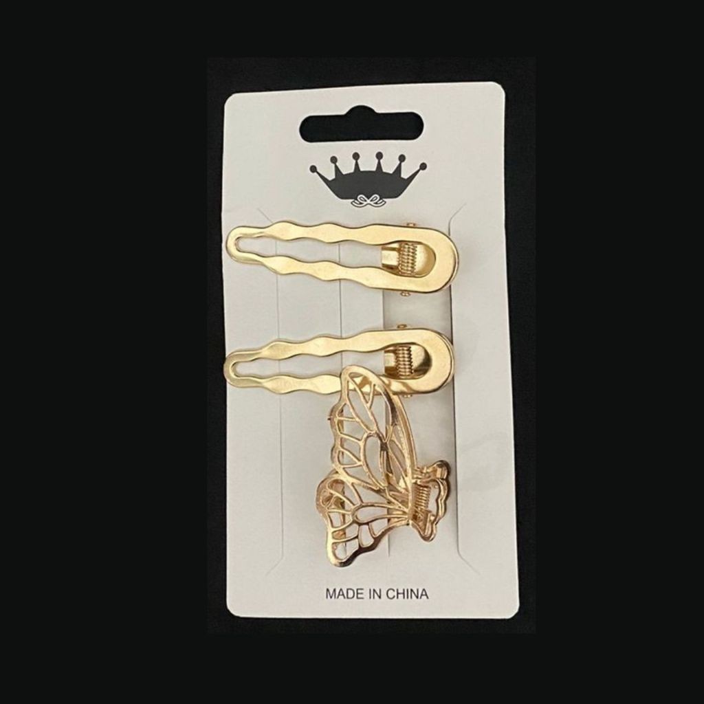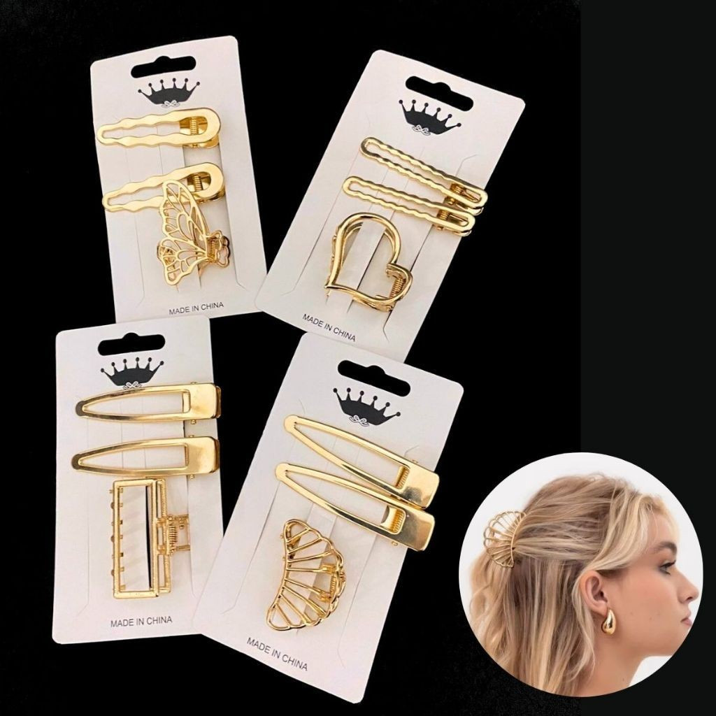 SHE - Kit 3 Presilhas de Cabelo Liga de Metal Dourado