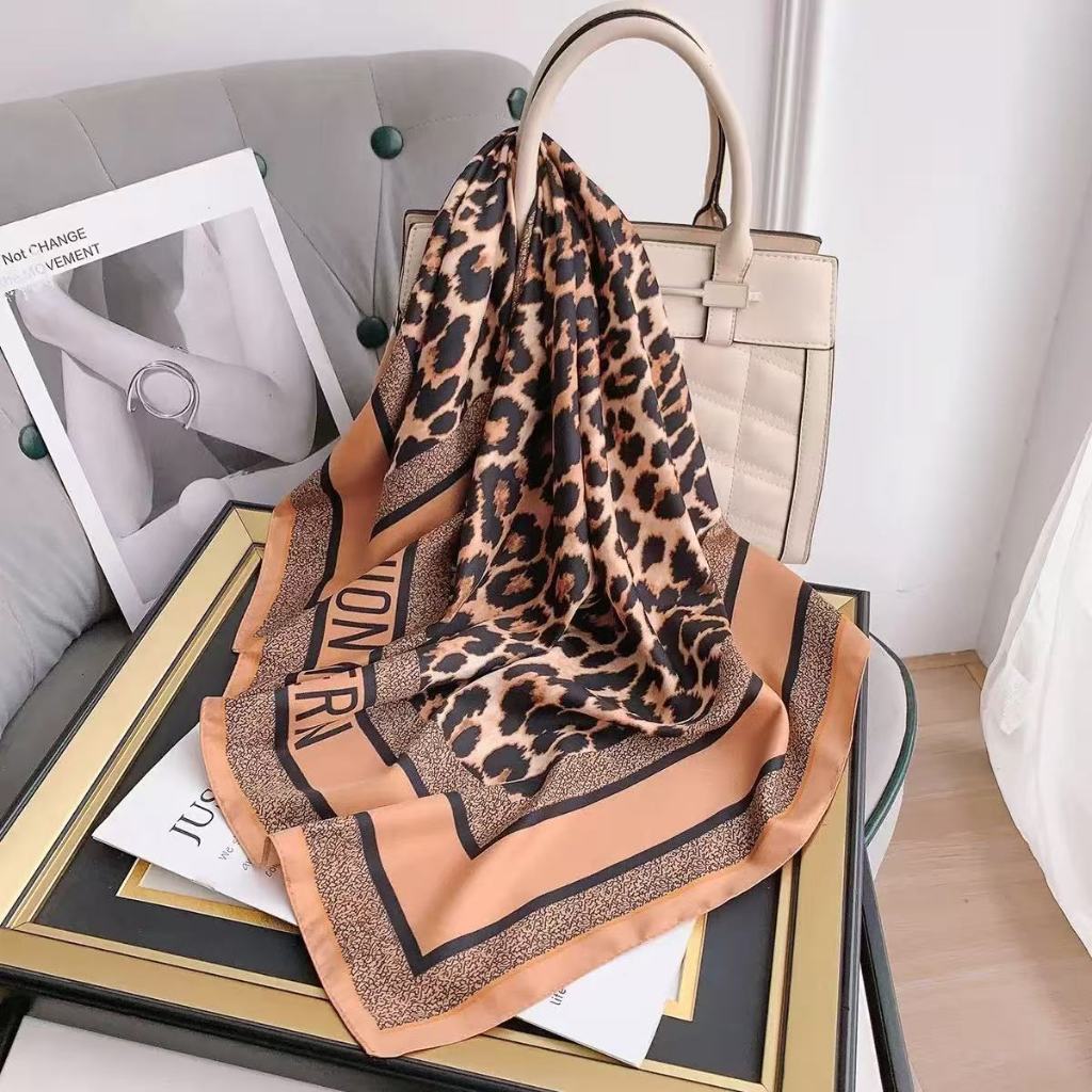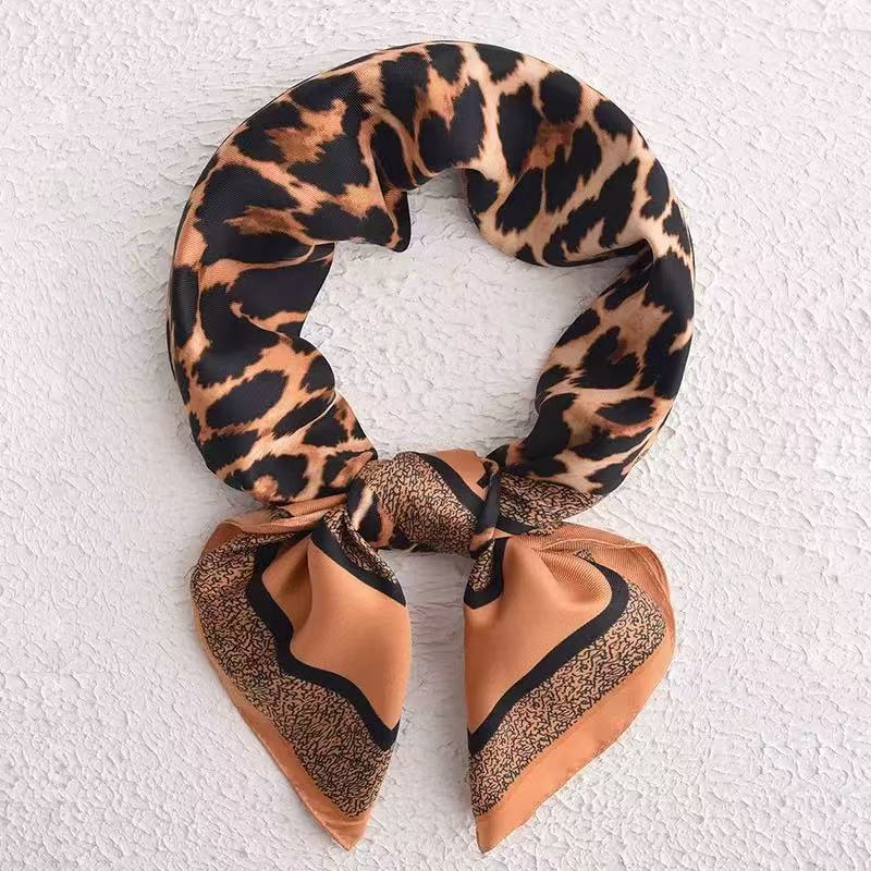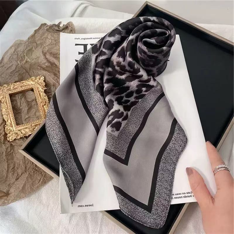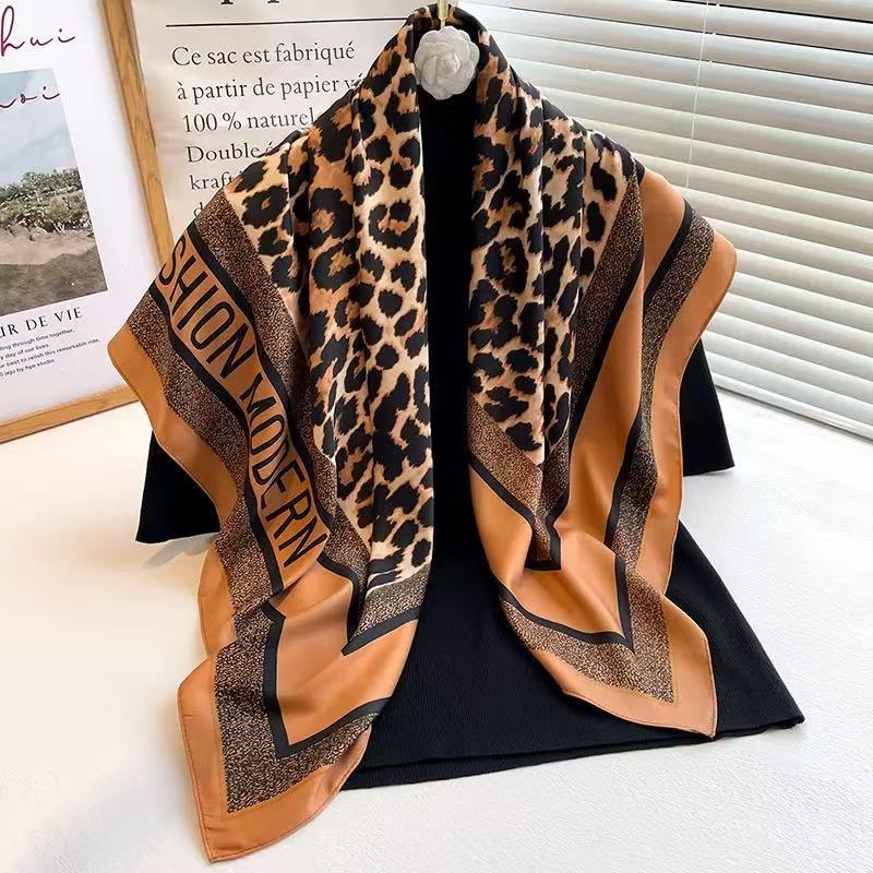 Lenço Com Acabamento De Cetim Estampa De Onça De 90x90 Quadrado De Seda Simulado Leve Para Mulheres , Primavera Ve