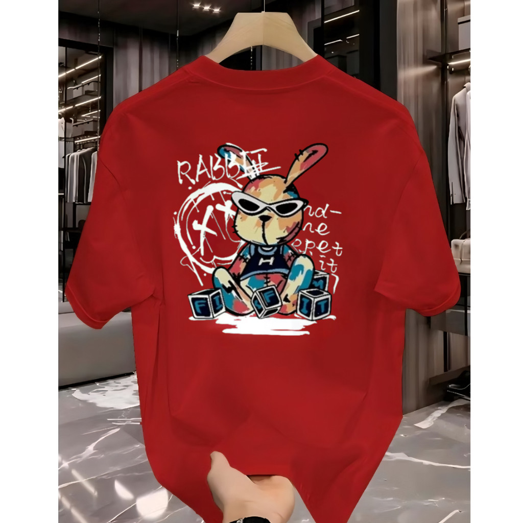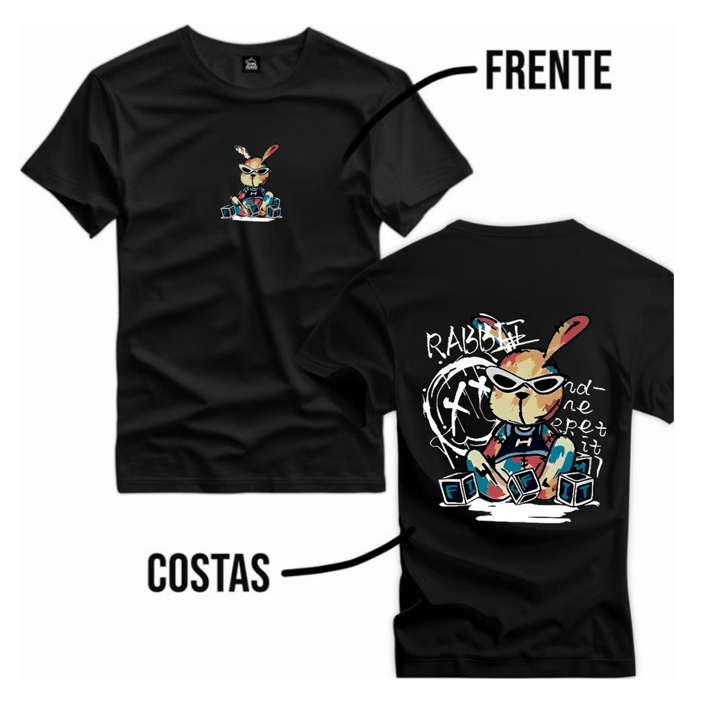 Camiseta Unissex Estilo T-shirt com Estampa Coelho e Tecido 100% Algodão