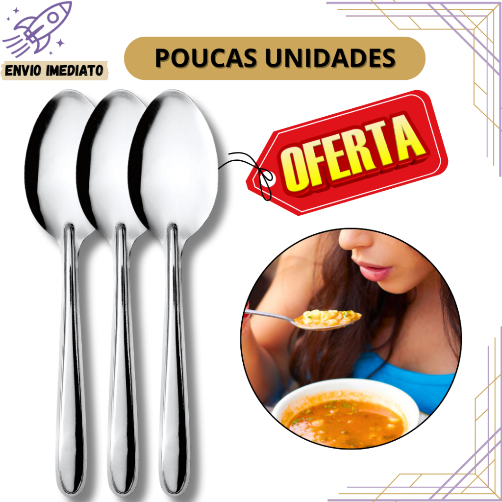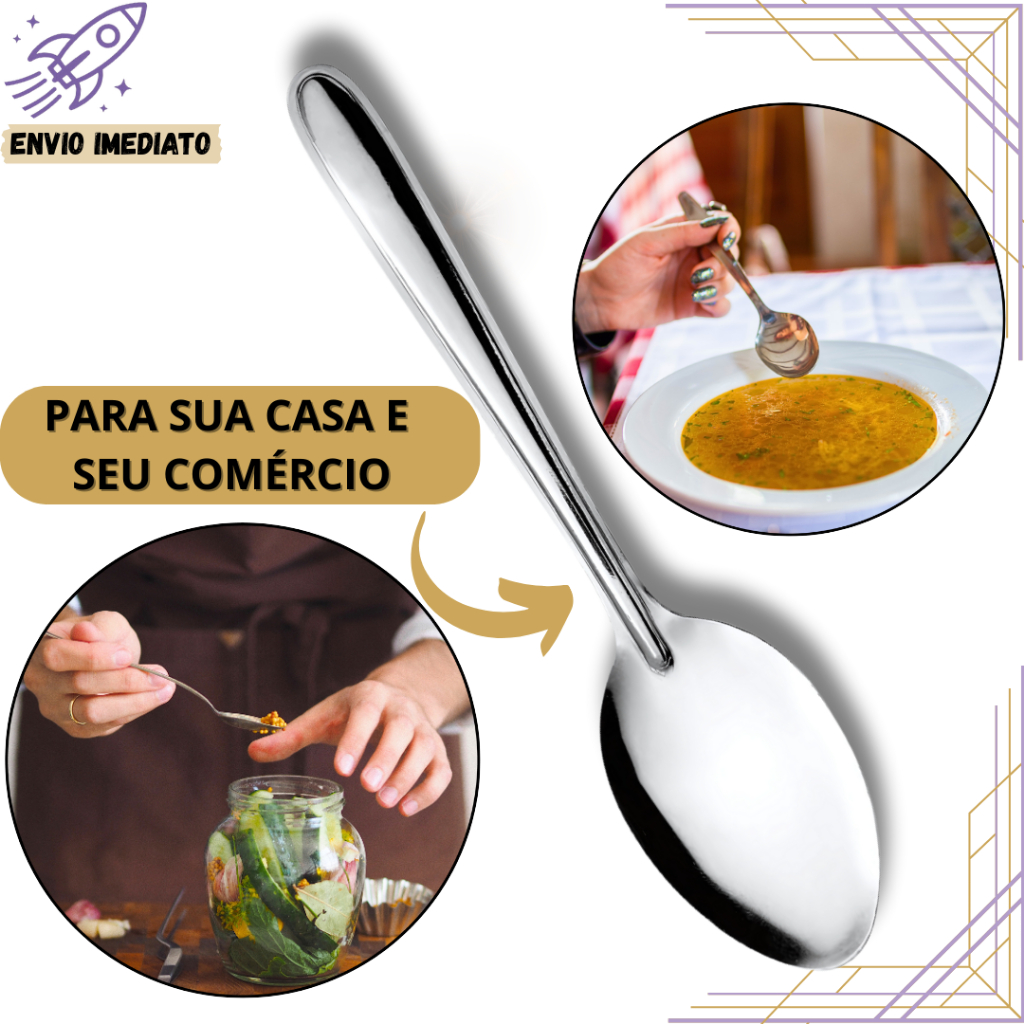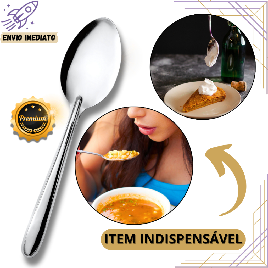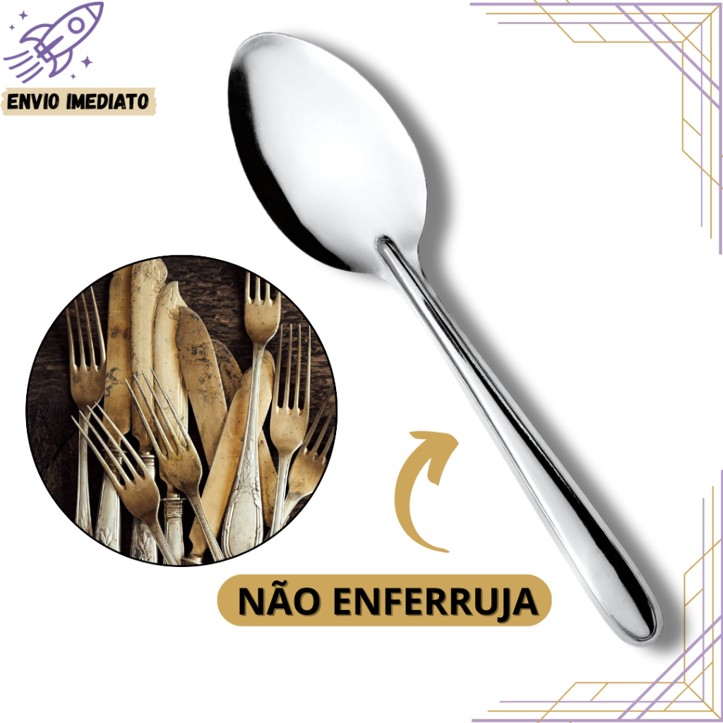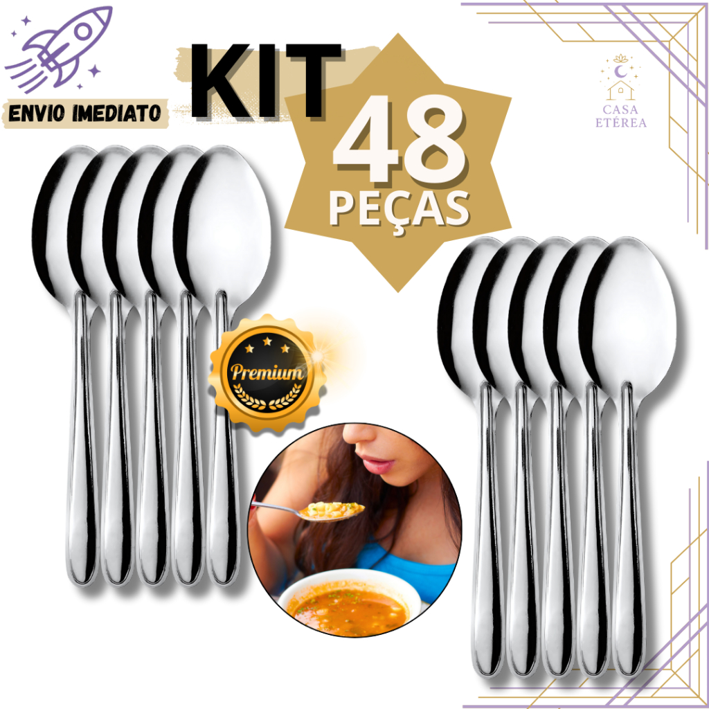 KIT 24 Colheres de Mesa Inox Talheres Premium para Uso Diário para Cozinha de Casa Restaurante Buffet