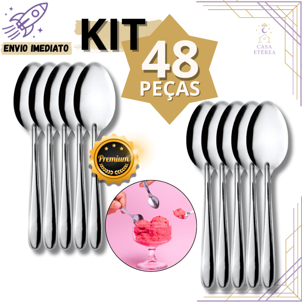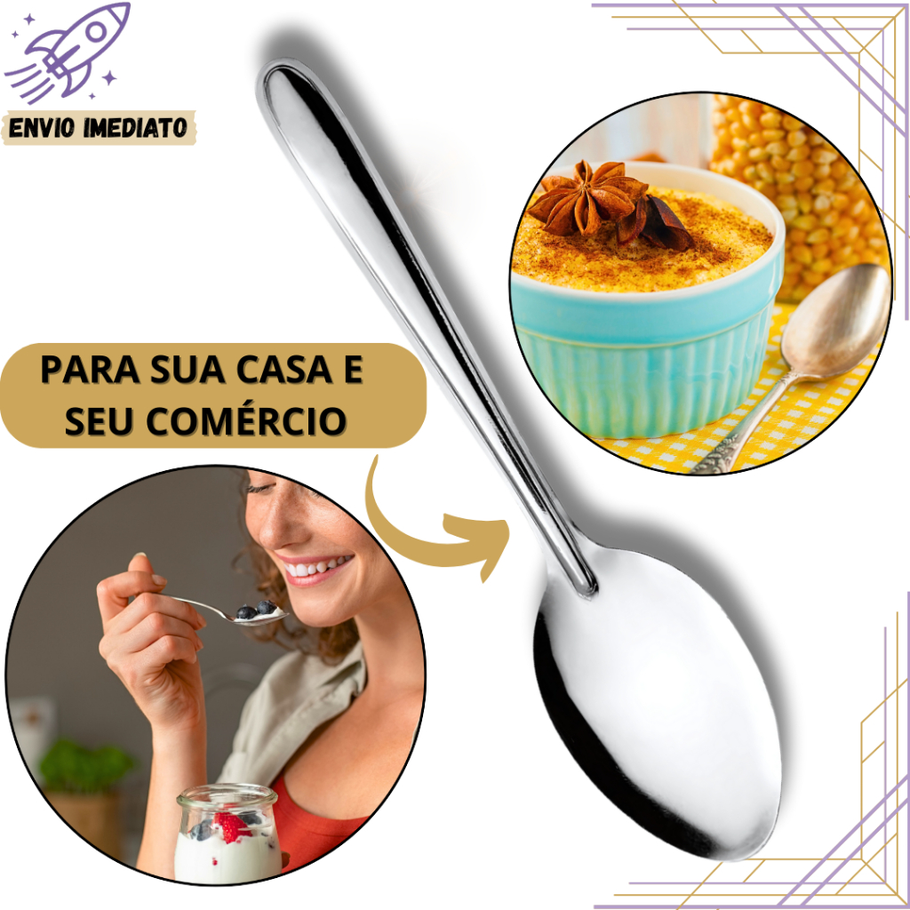 Kit 100 Colheres de Sobremesa de Inox para Café Chá e Uso Diário para Cozinha de Casa e Restaurante