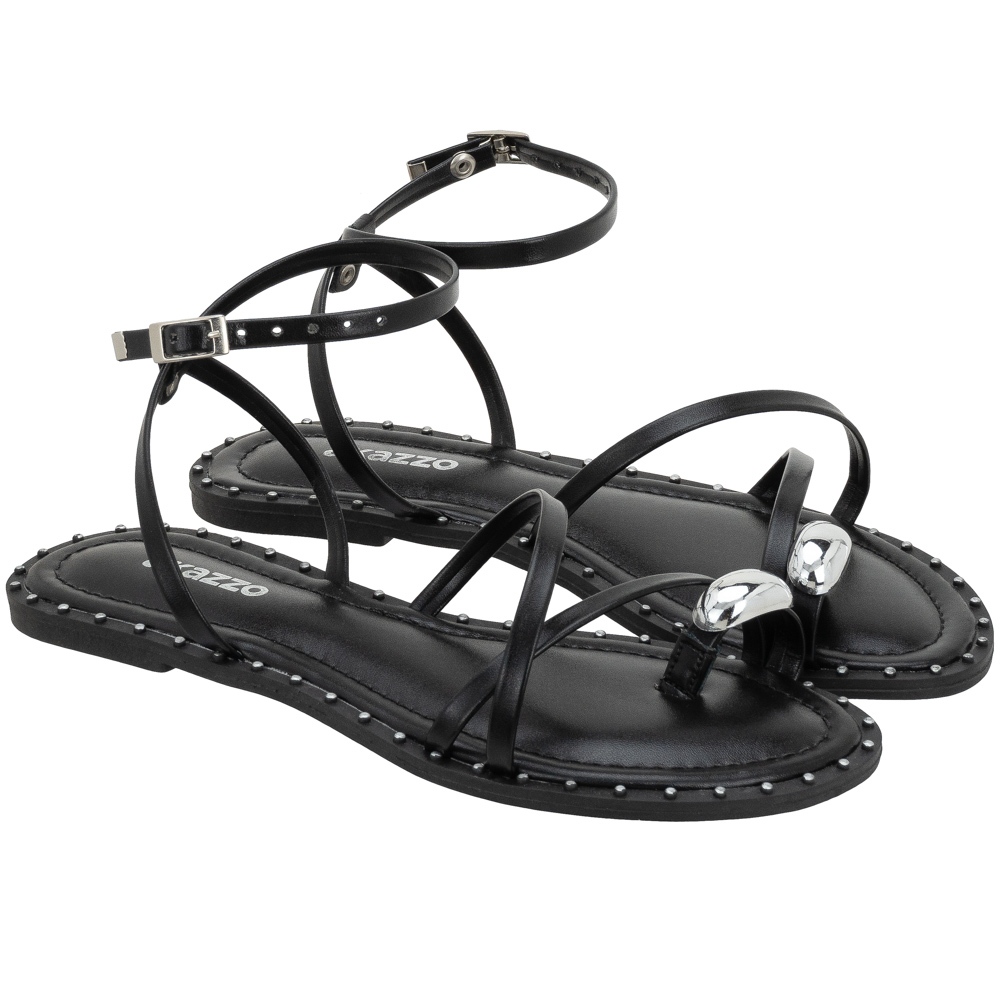 Sandália Feminina Rasteirinha Fivela Bico Redondo Tachas Medalha Lesma Moda Confortável ABS Macia