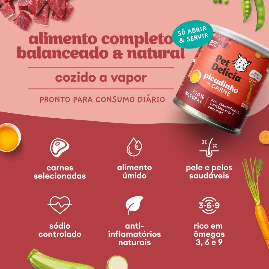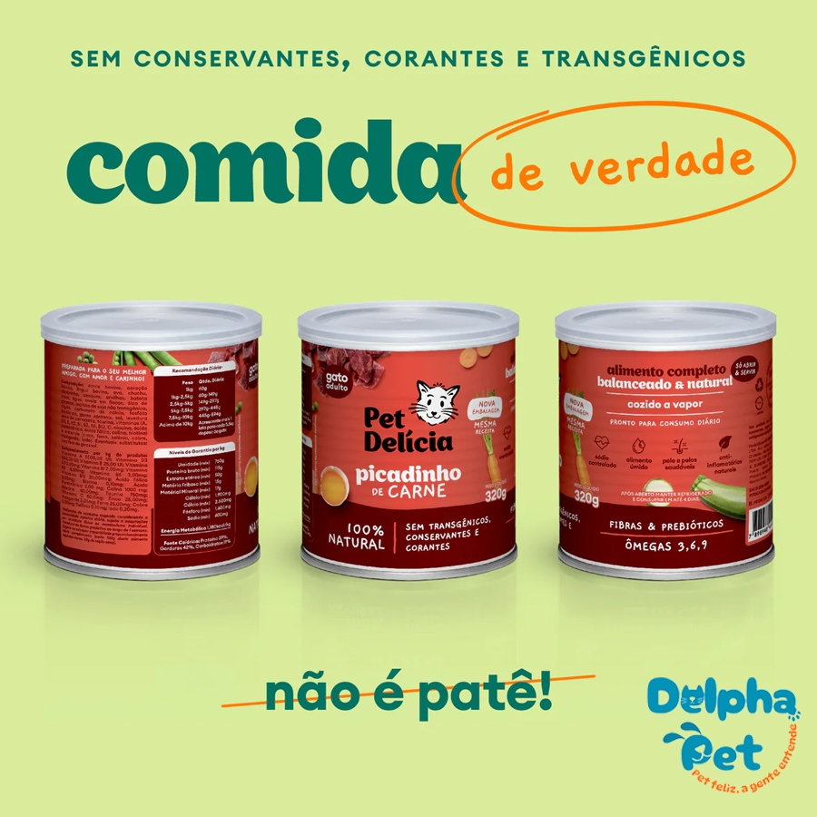 Ração Úmida Natural Para Gatos Picadinho de Carne 320g Pet Delícia