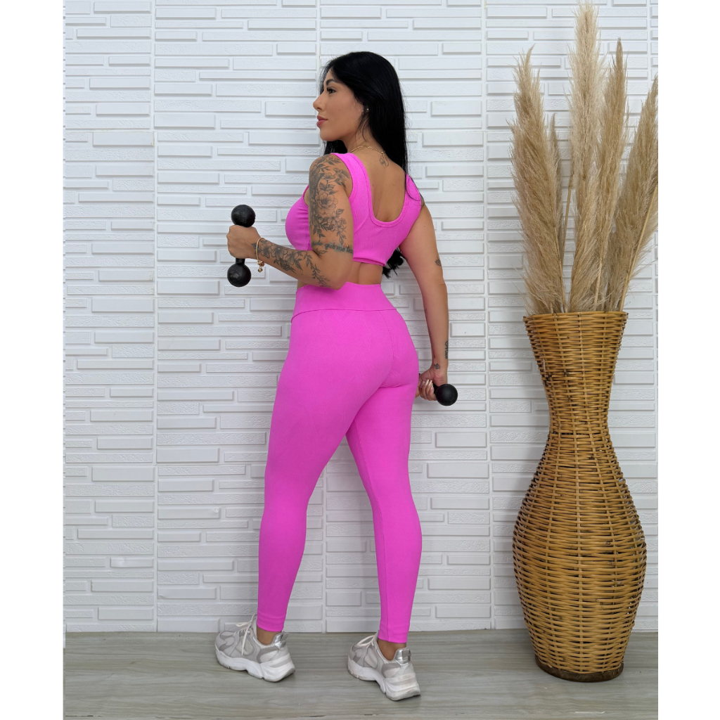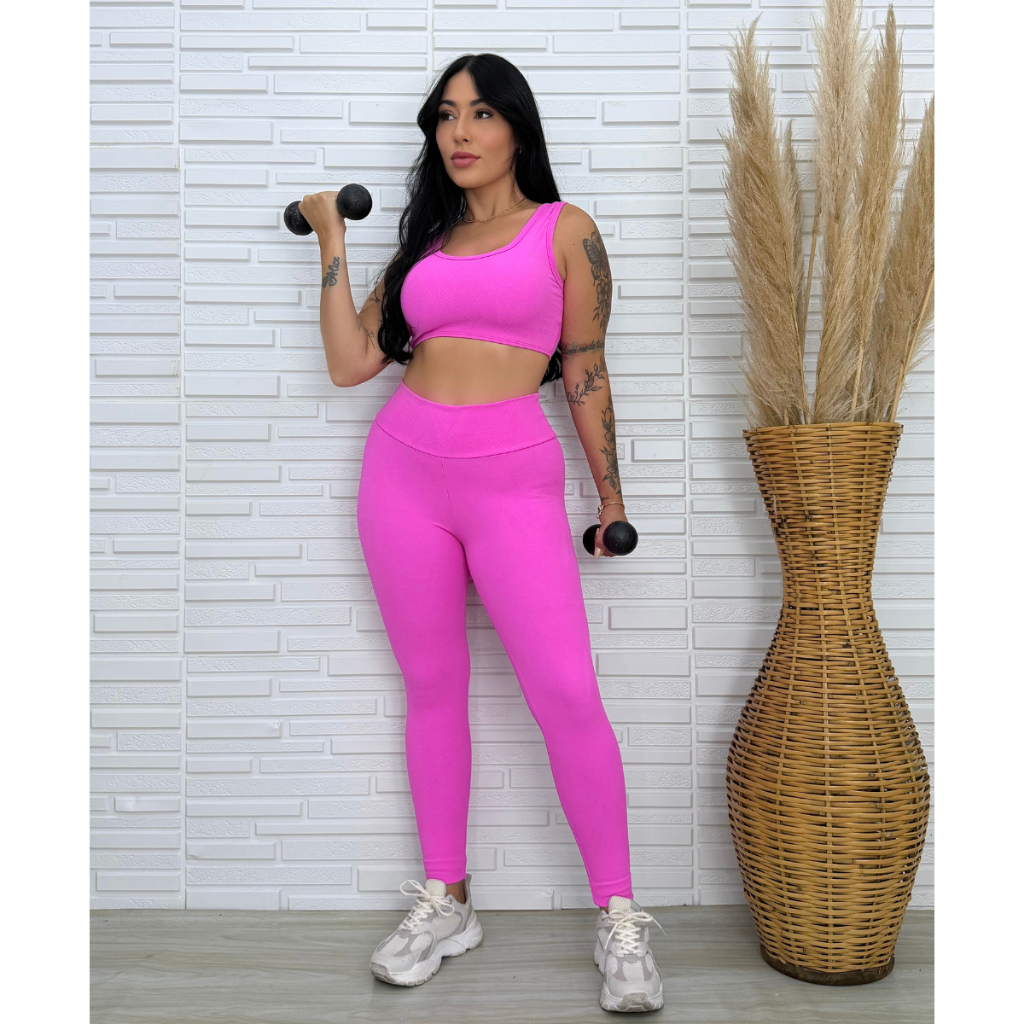 Conjunto Fitness Academia Top Legging Feminino Treino Jacquard Sem Bojo Leg sem Transparencia