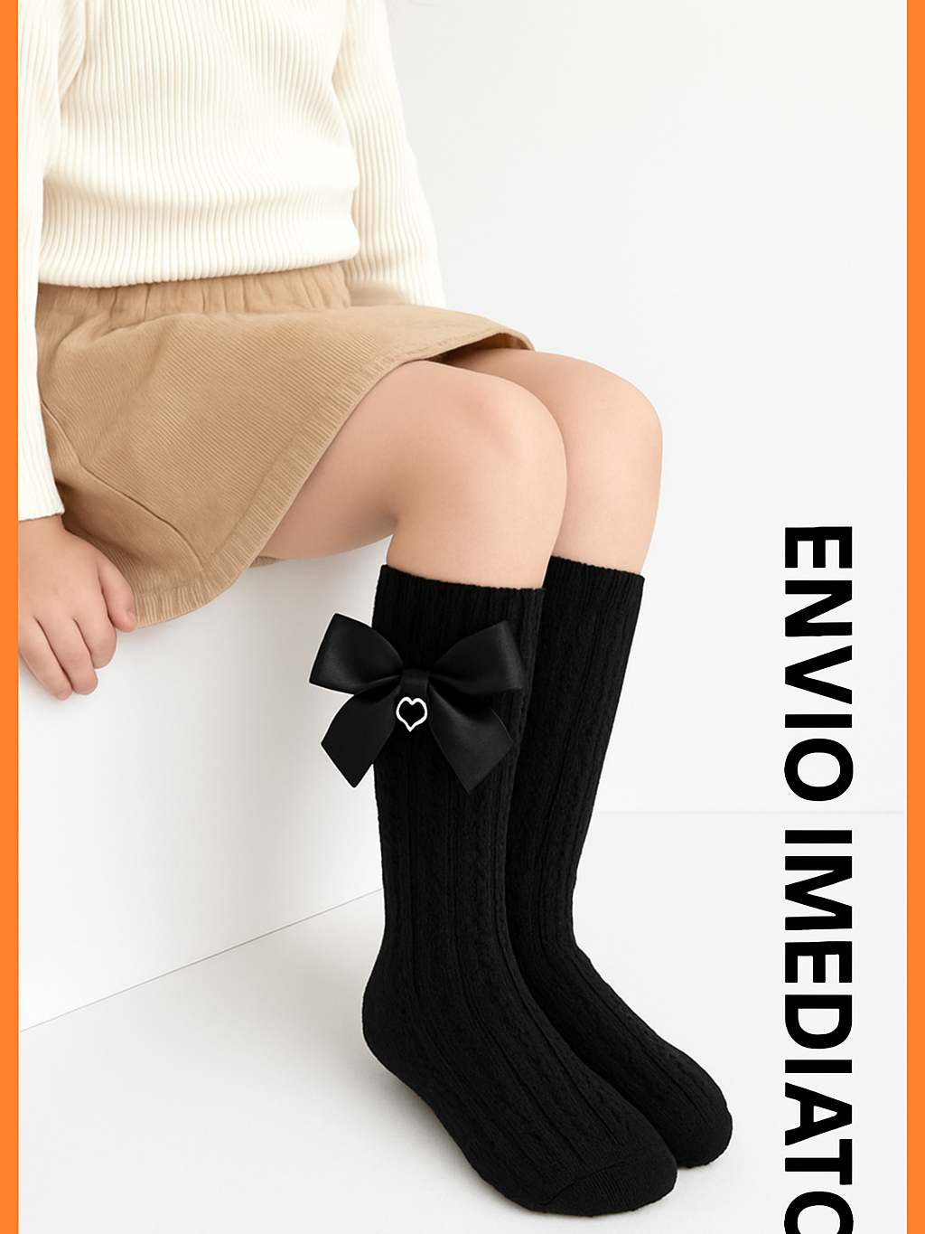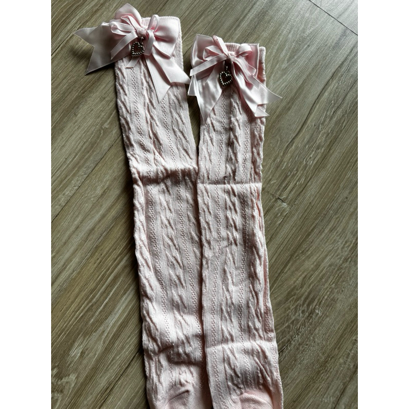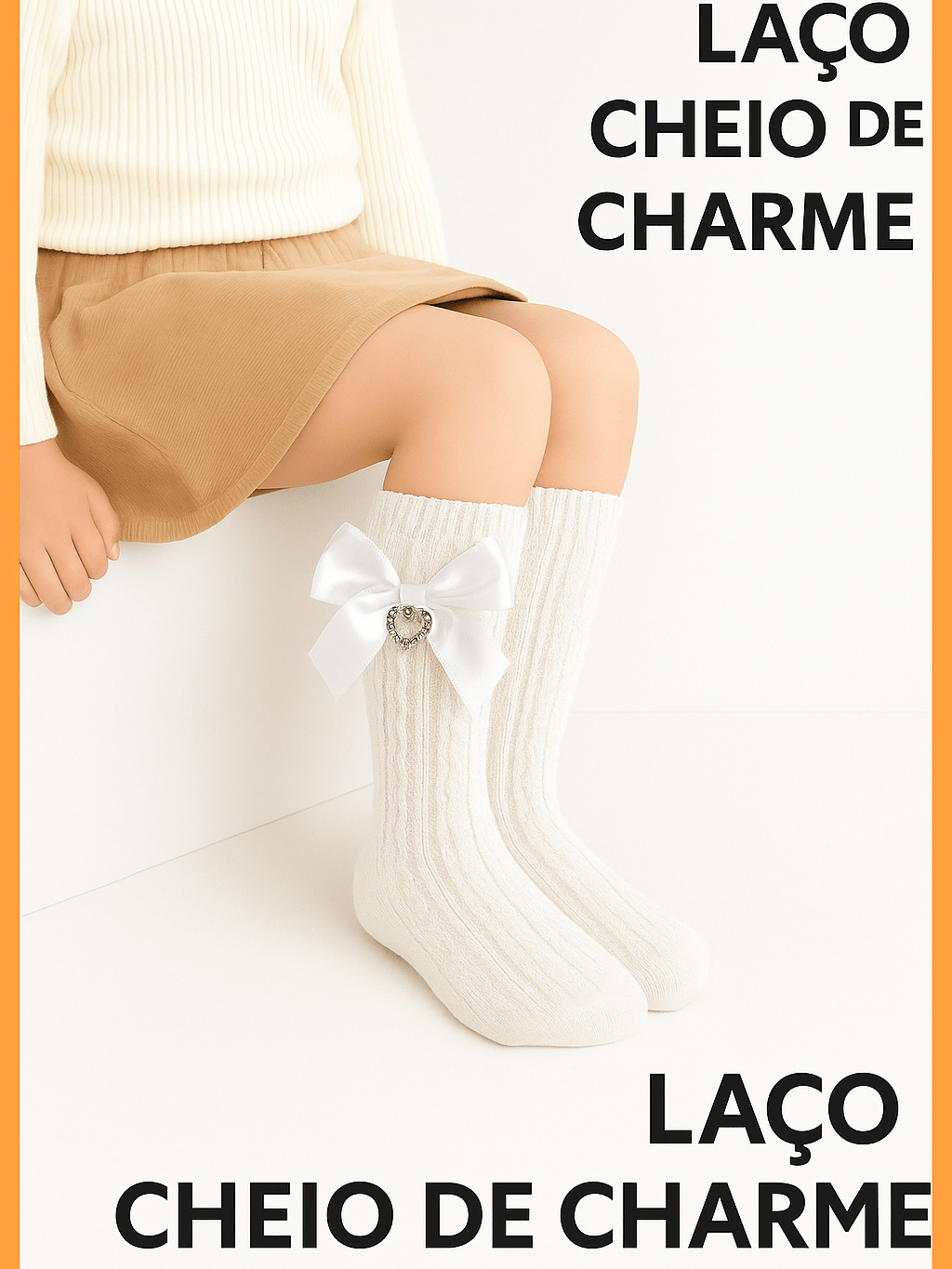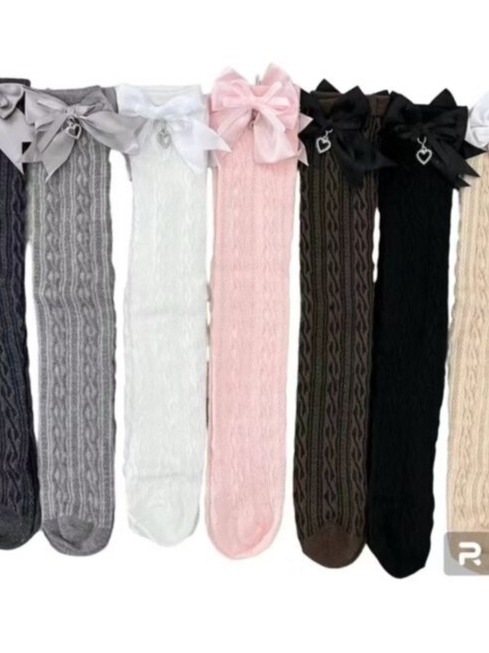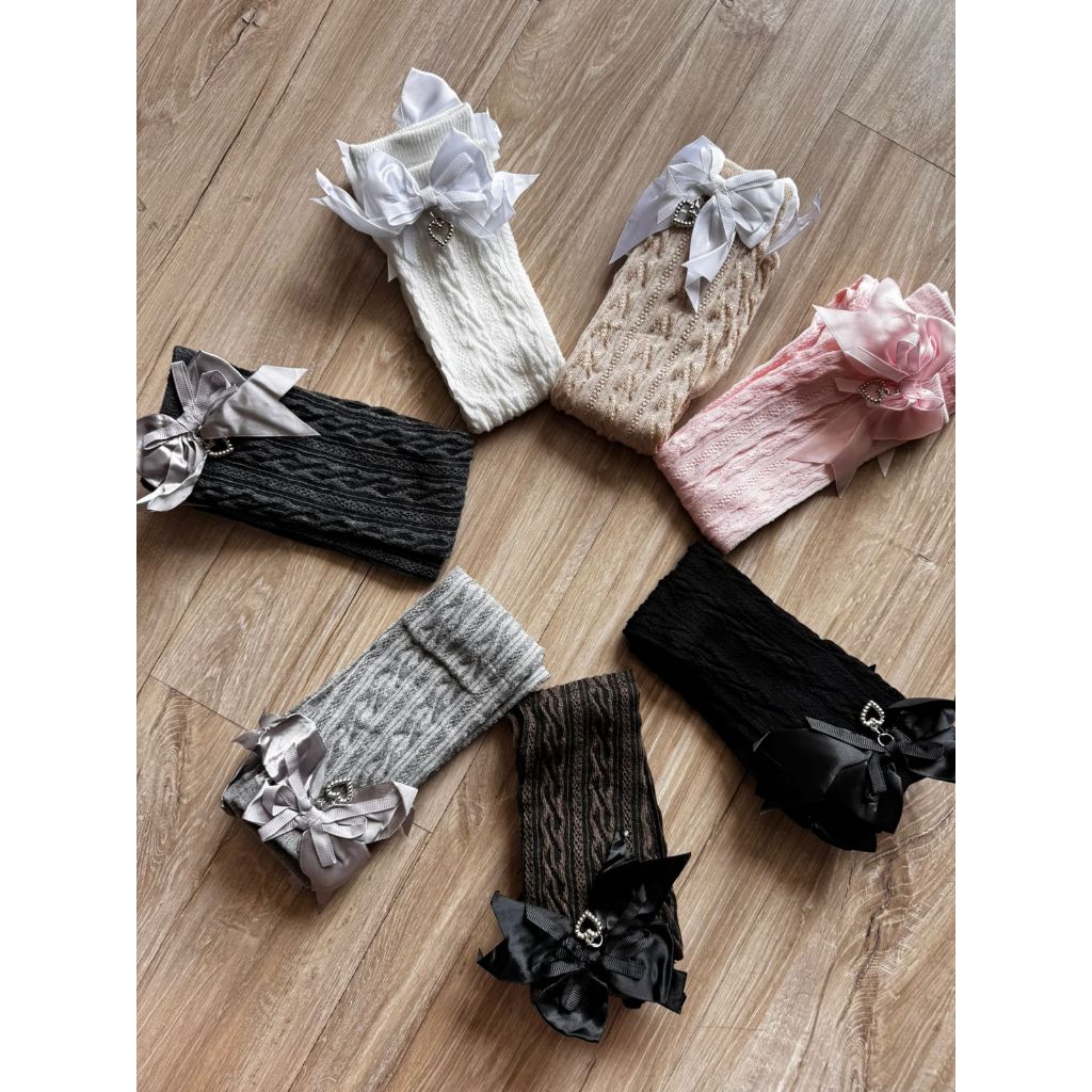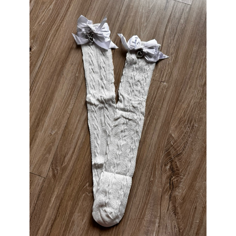 Meia 3/4 renda laço coração meia menina infantil para batizado, casamento, igreja, social