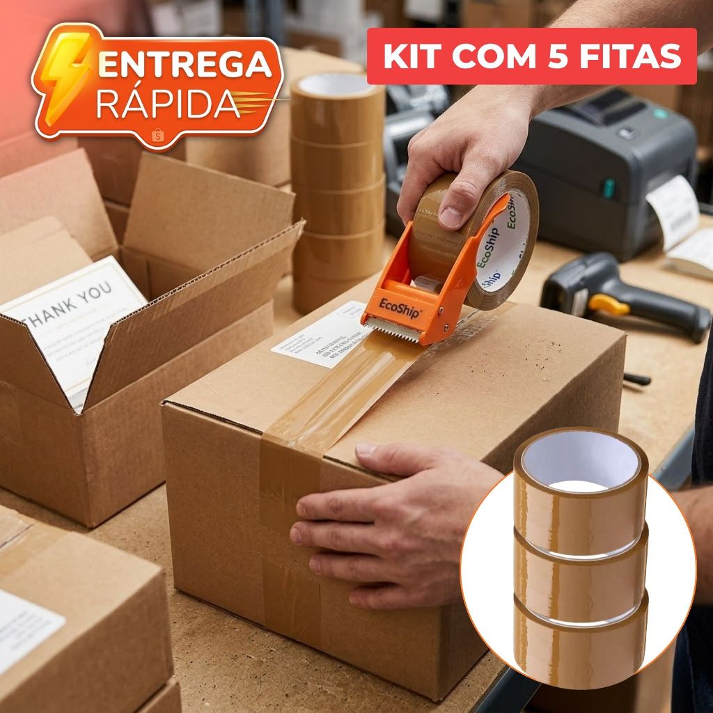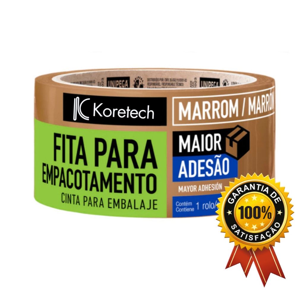 Fitas Empacotamento Adesiva Marrom Caixa Embalagem E-Commerce Papelão (48mm x 45m) Koretech