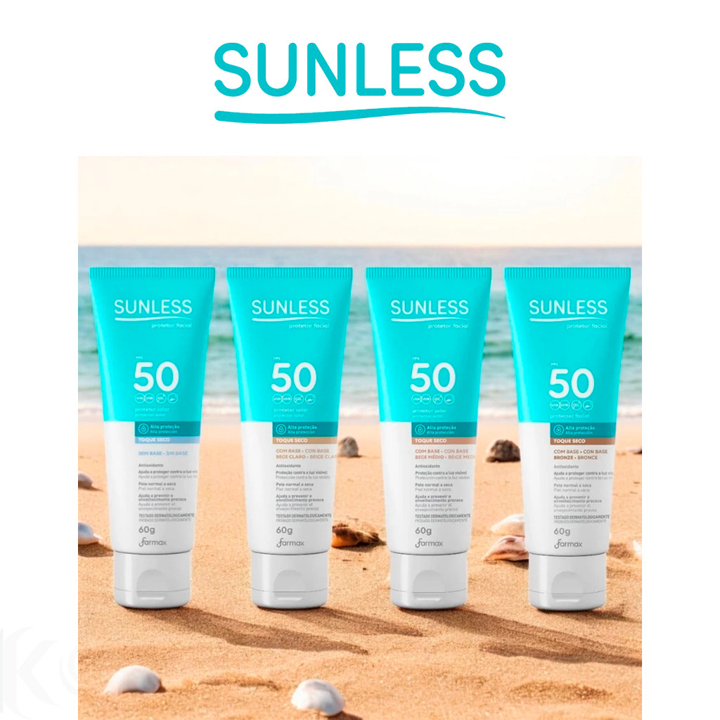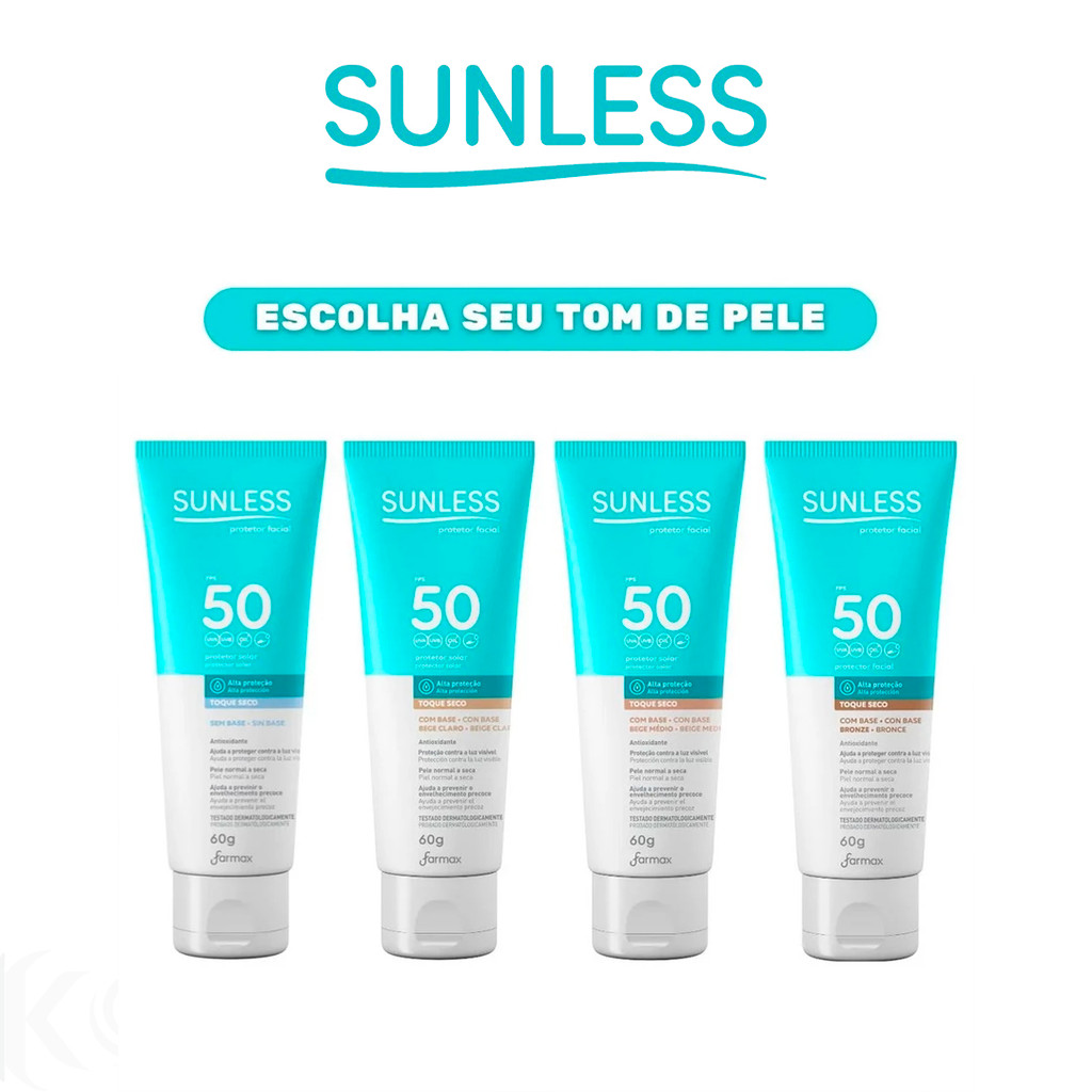 Protetor Solar Facial Alta Proteção FPS 50 Toque Seco Efeito Natural Sunless com Base Envio Imediato