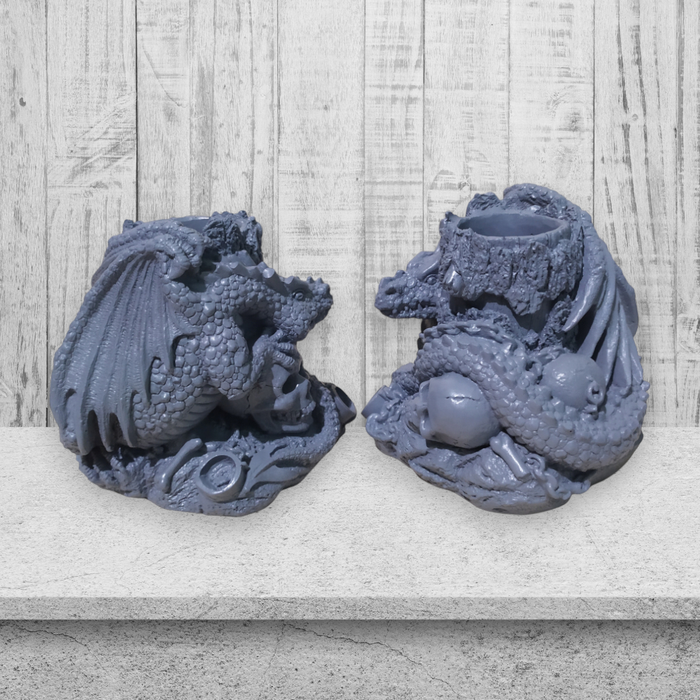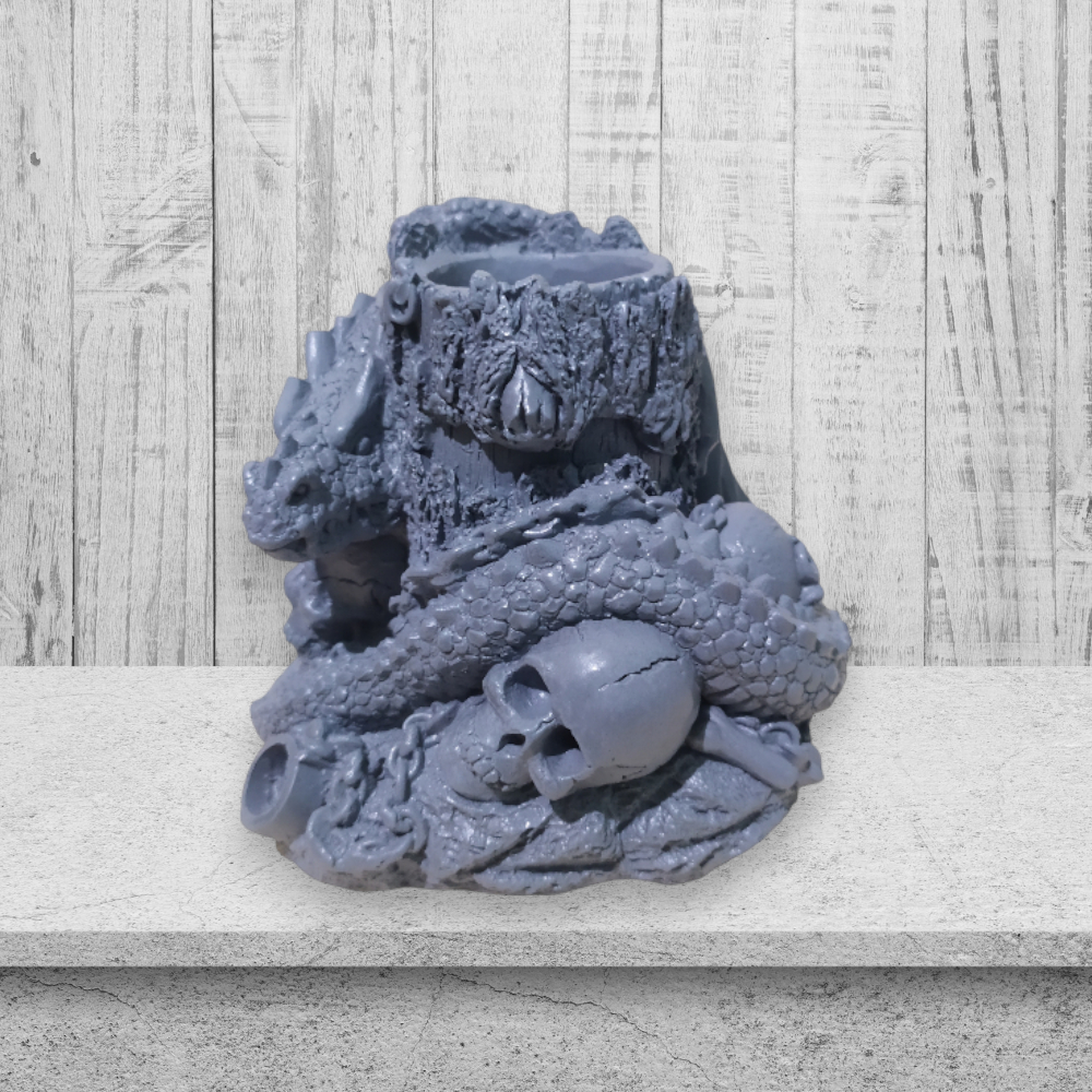 Porta Lápis Dragão Escultura Decorativa Organizador De Mesa Em Gesso