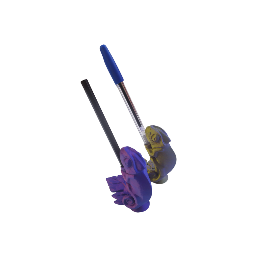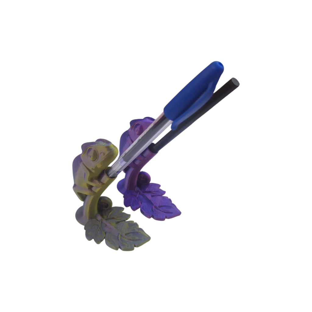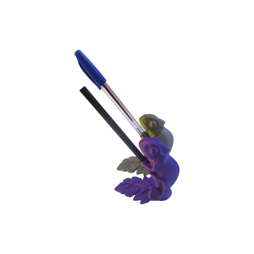Porta Lápis Caneta Organizador De Mesa Camaleão Bicolor - Decoração 3D - 2 Unid.