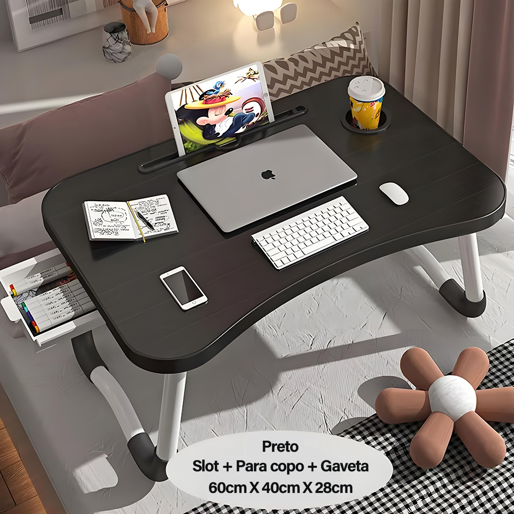 Portátil Mesa Dobrável Articulada em Mdf Suporte para Laptop Cama Estudo Porta Tablet Para Notebook