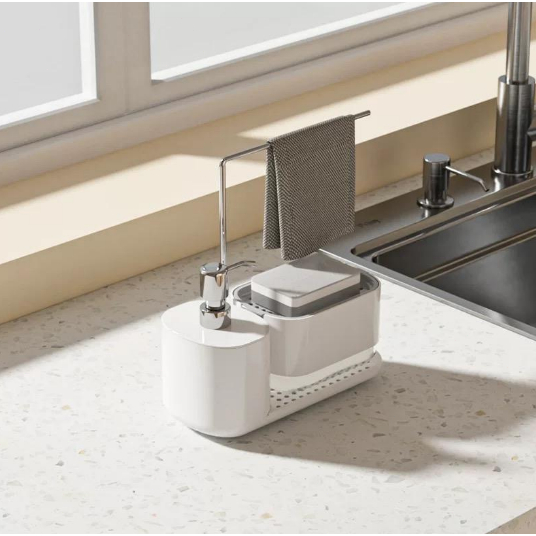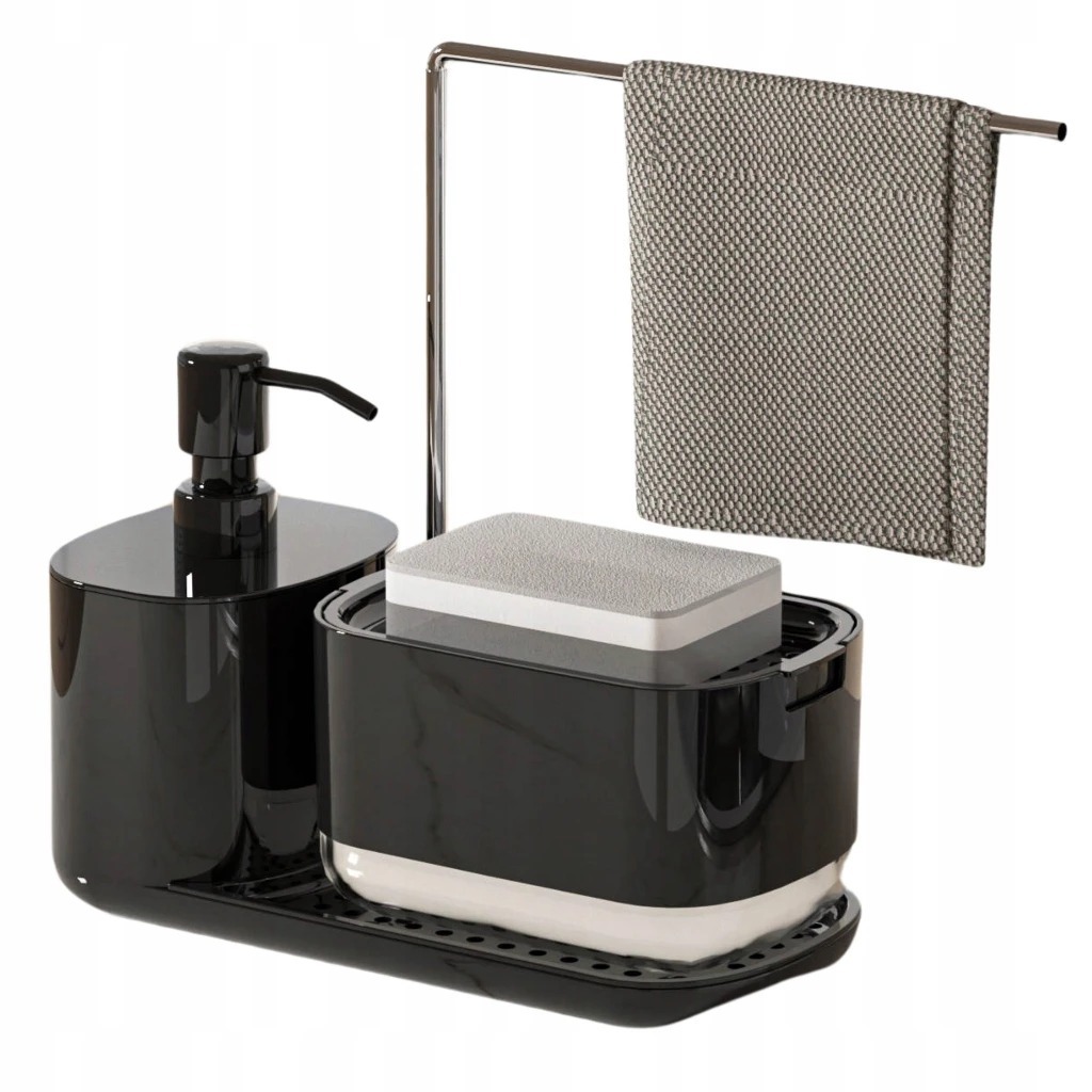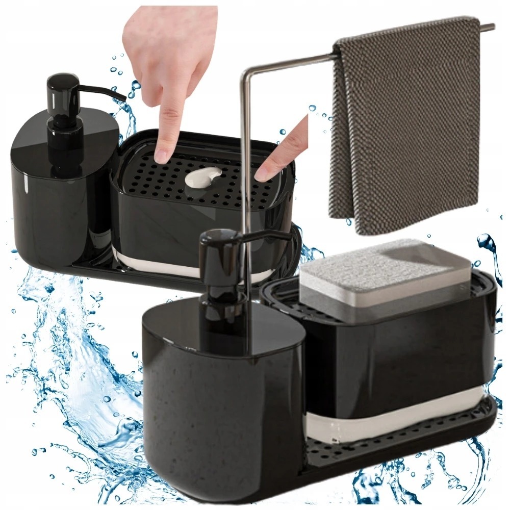 Kit organizador de cozinha: dispenser de sabonete manual + suporte de pano + dispenser de detergente