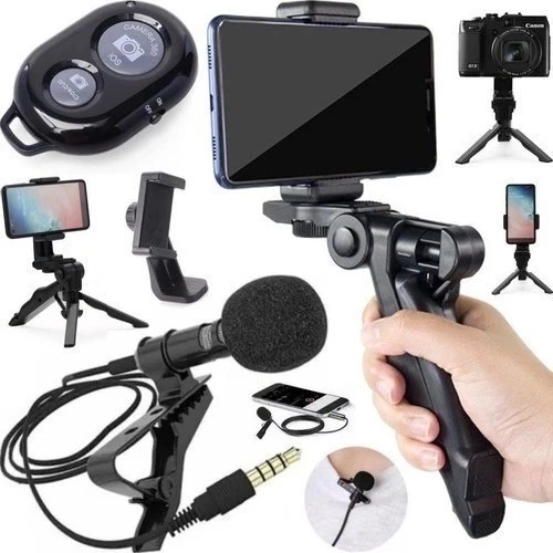 Kit Tripé Estabilizador de Mão 5 em 1 Gimbal e Microfone para Celular Gravação de Vídeo Profissional