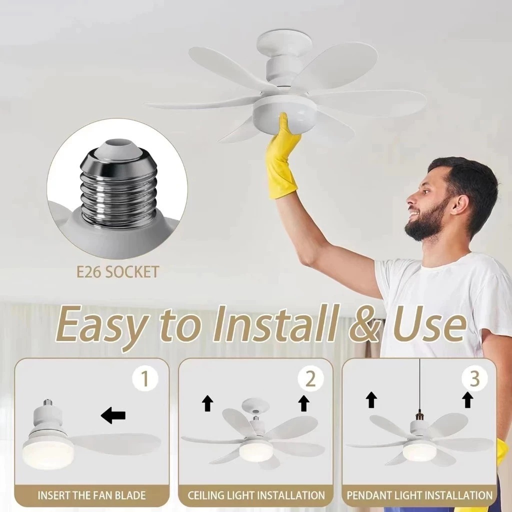 Ventilador de Teto 60W Lâmpada Luminária LED 3 Cores E27 Silencioso Bivolt 2 em 1 C/ Controle Remoto