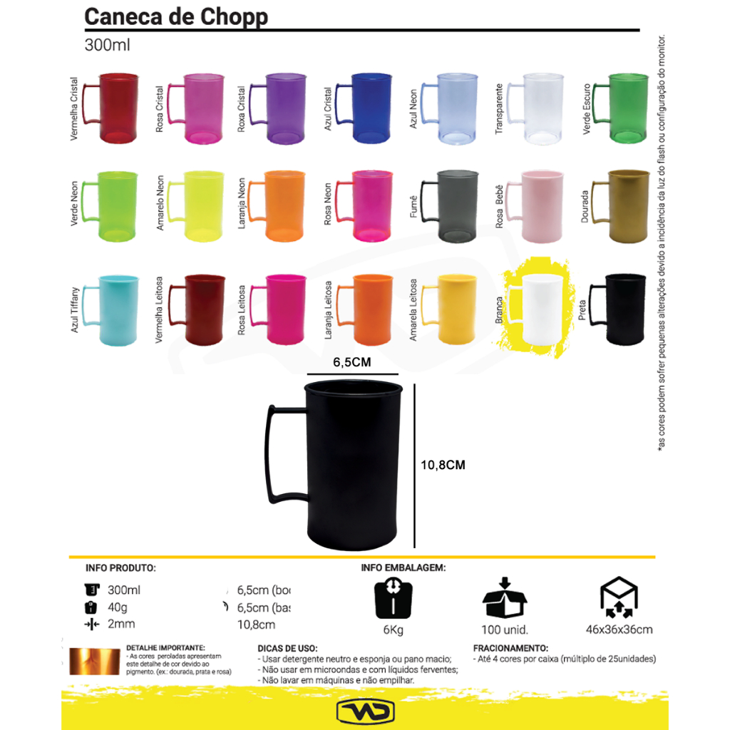 100 Canecas Chopp Acrílico 300ml Premium SEM Personalização PEQUENA