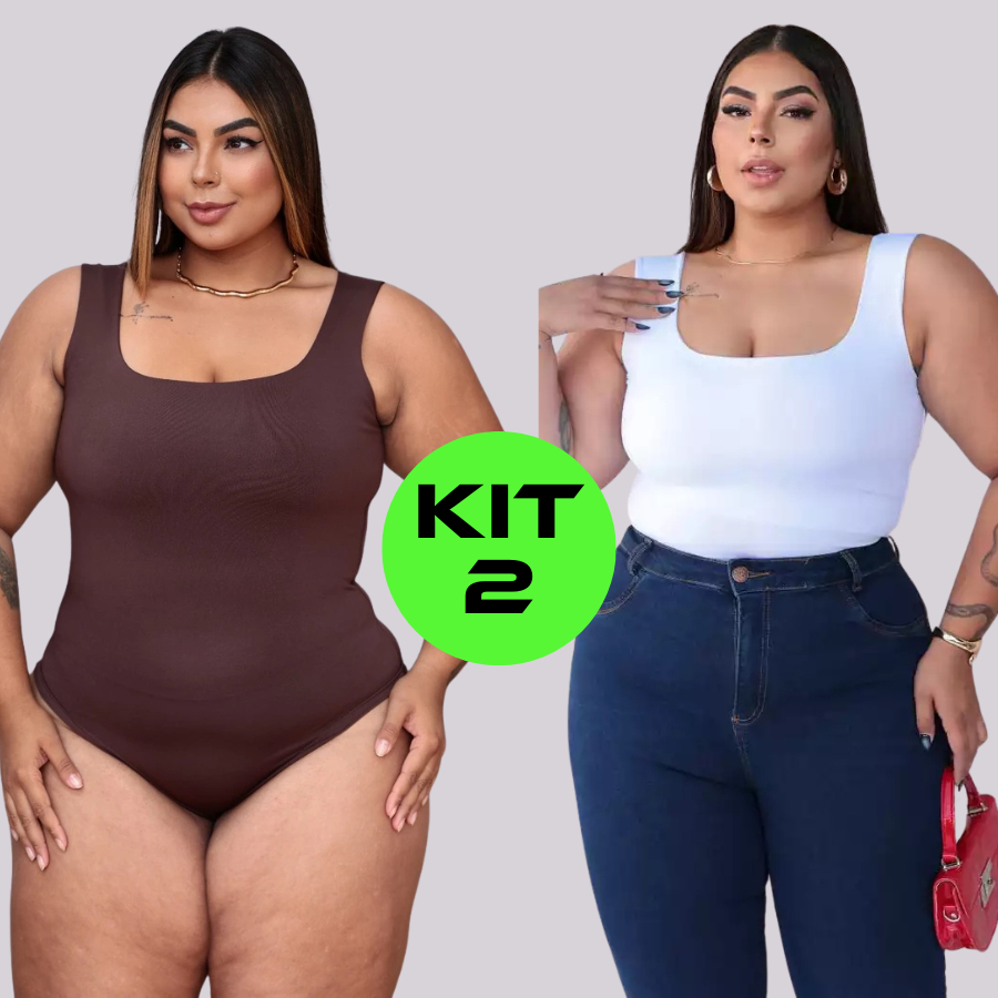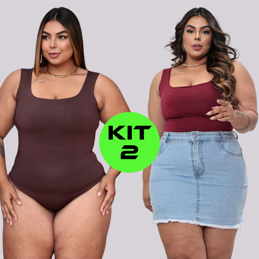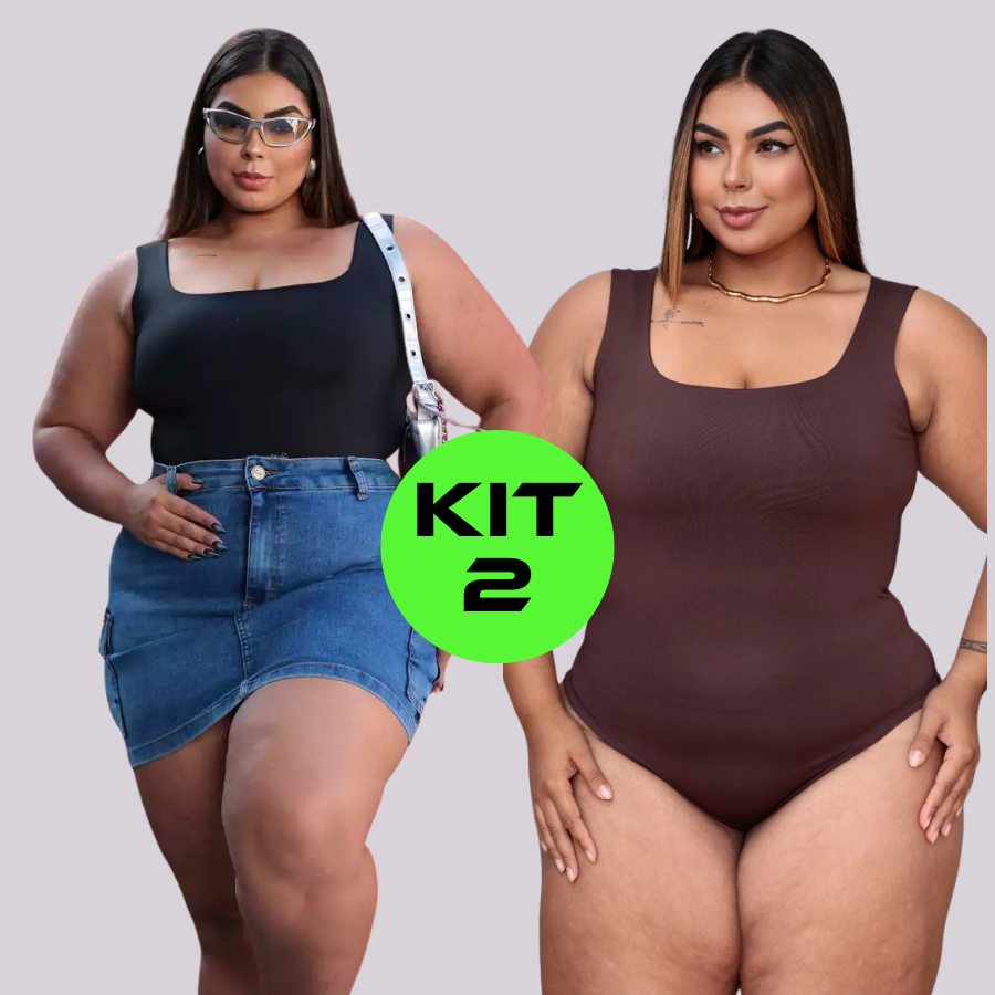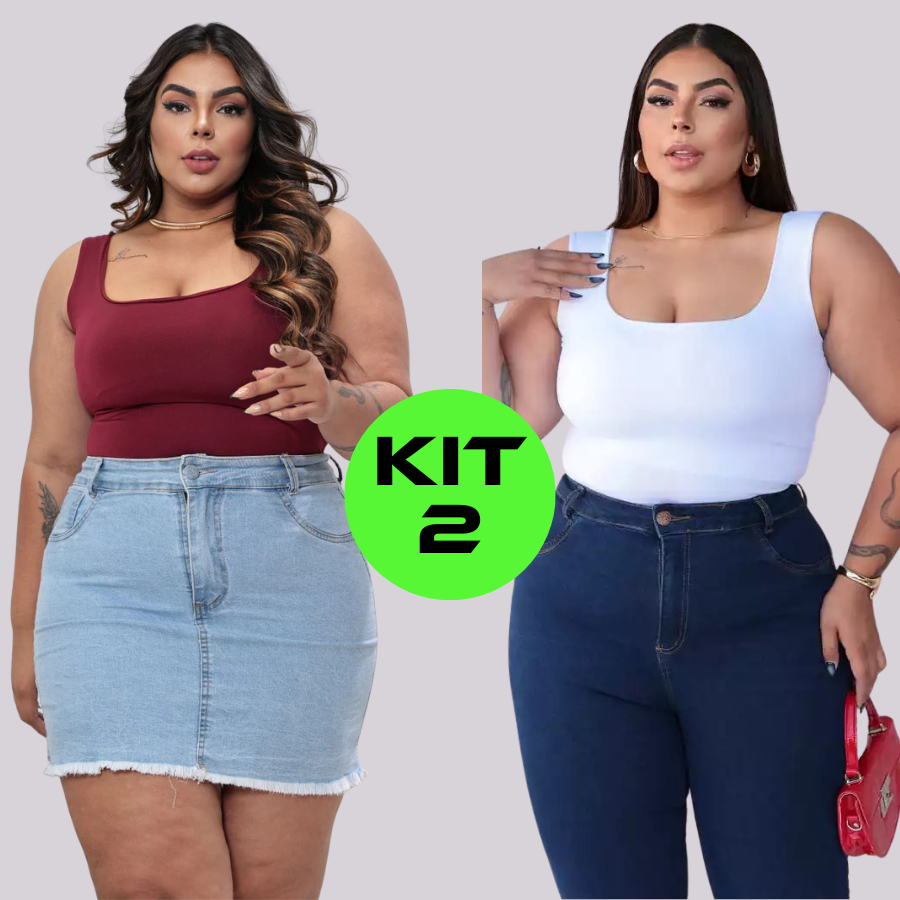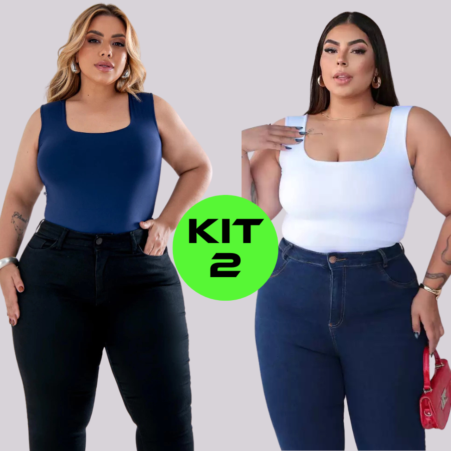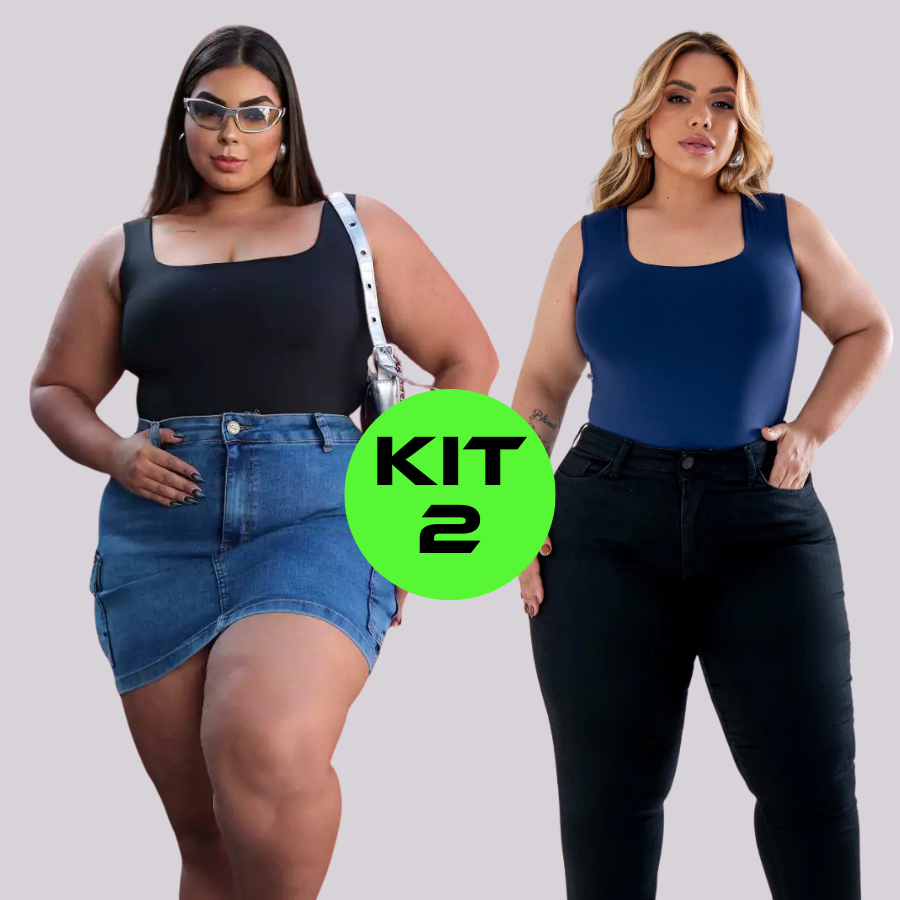 Kit 2 Body Plus Size Decote Quadrado Bores Feminino Alças Largas Elegante