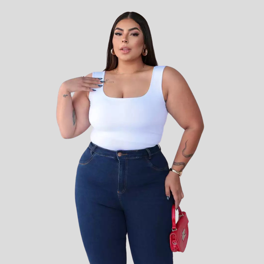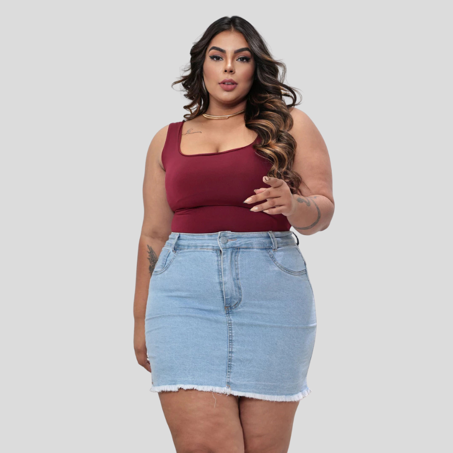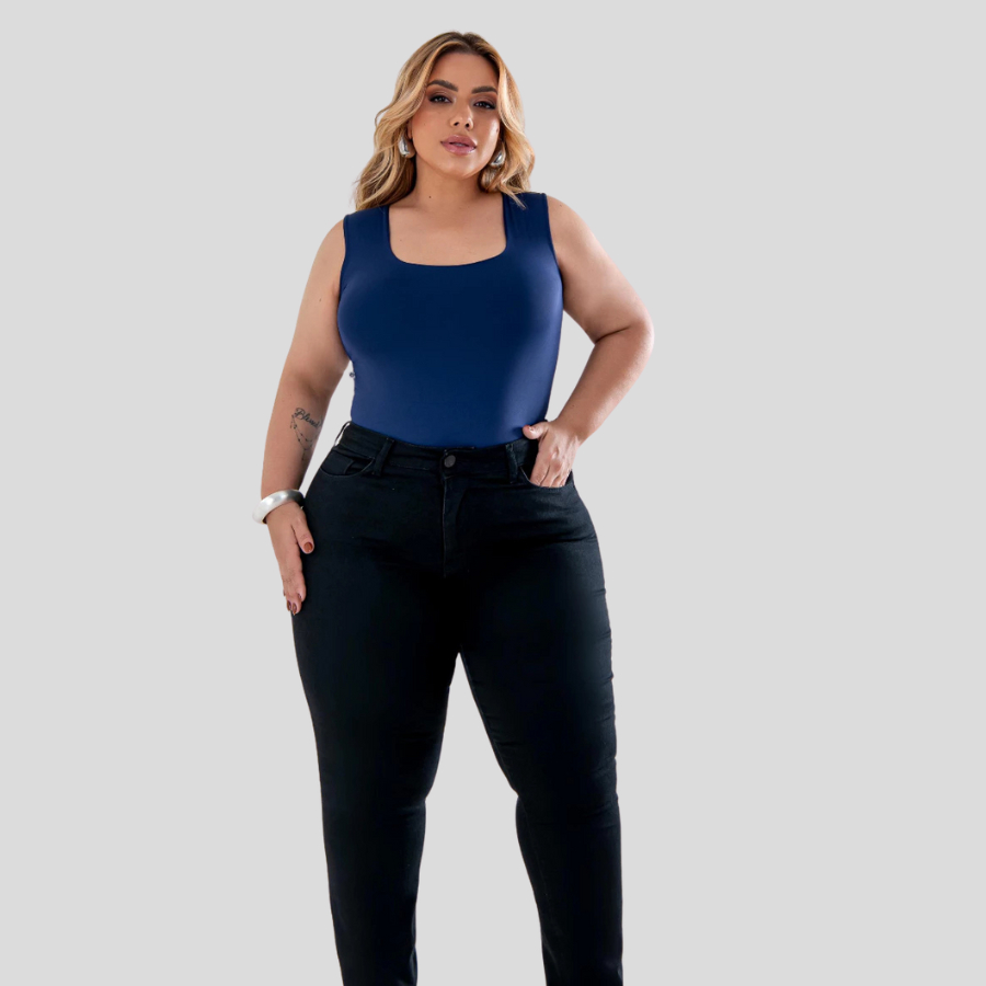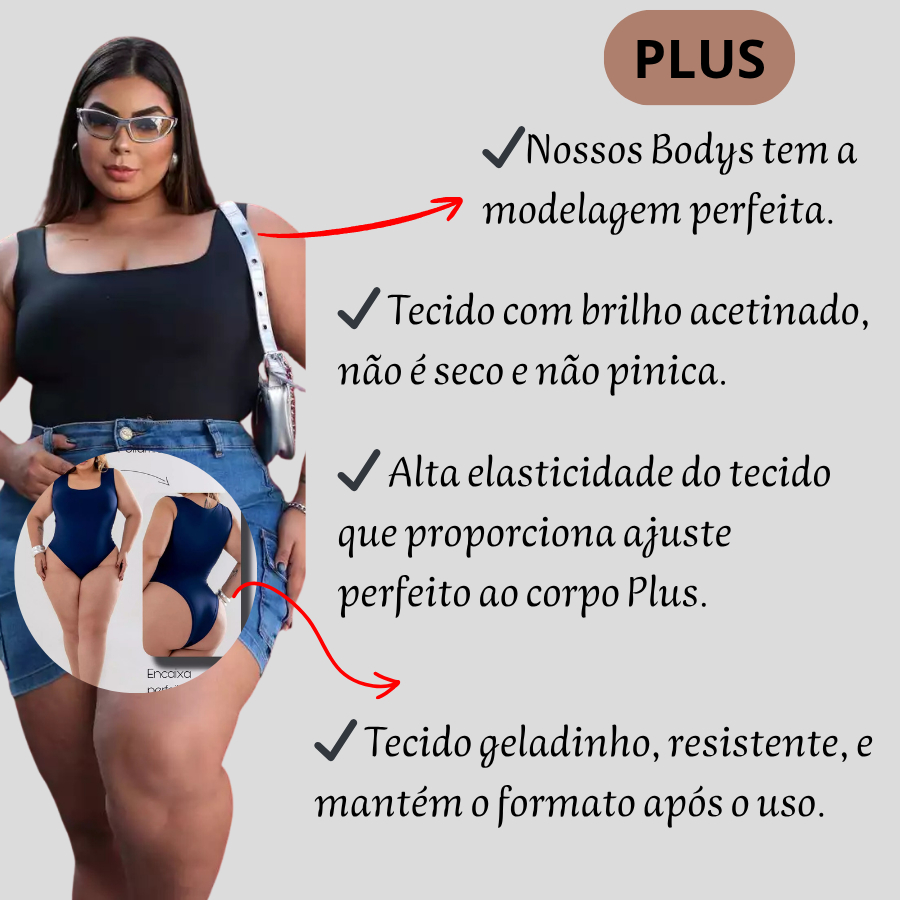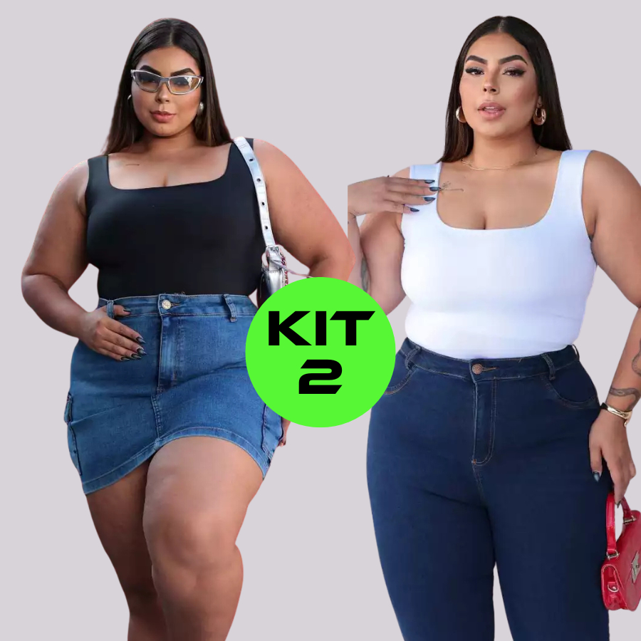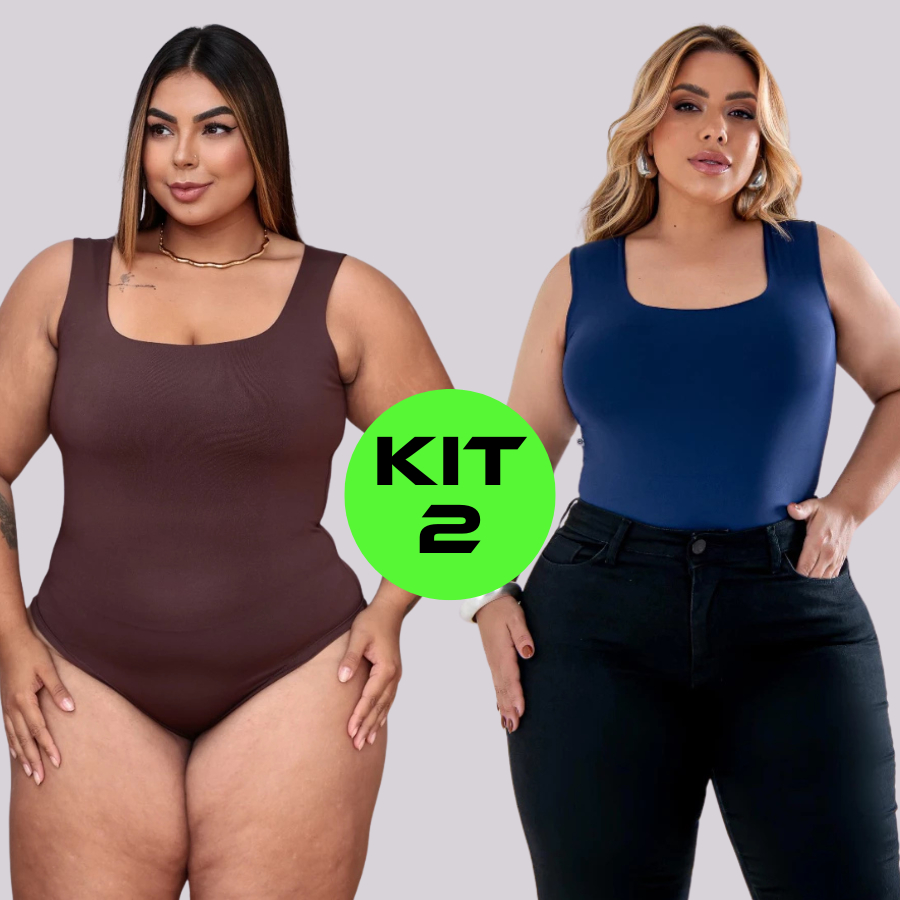 Kit 2 Body Plus Size Decote Quadrado Bores Feminino Alças Largas Elegante