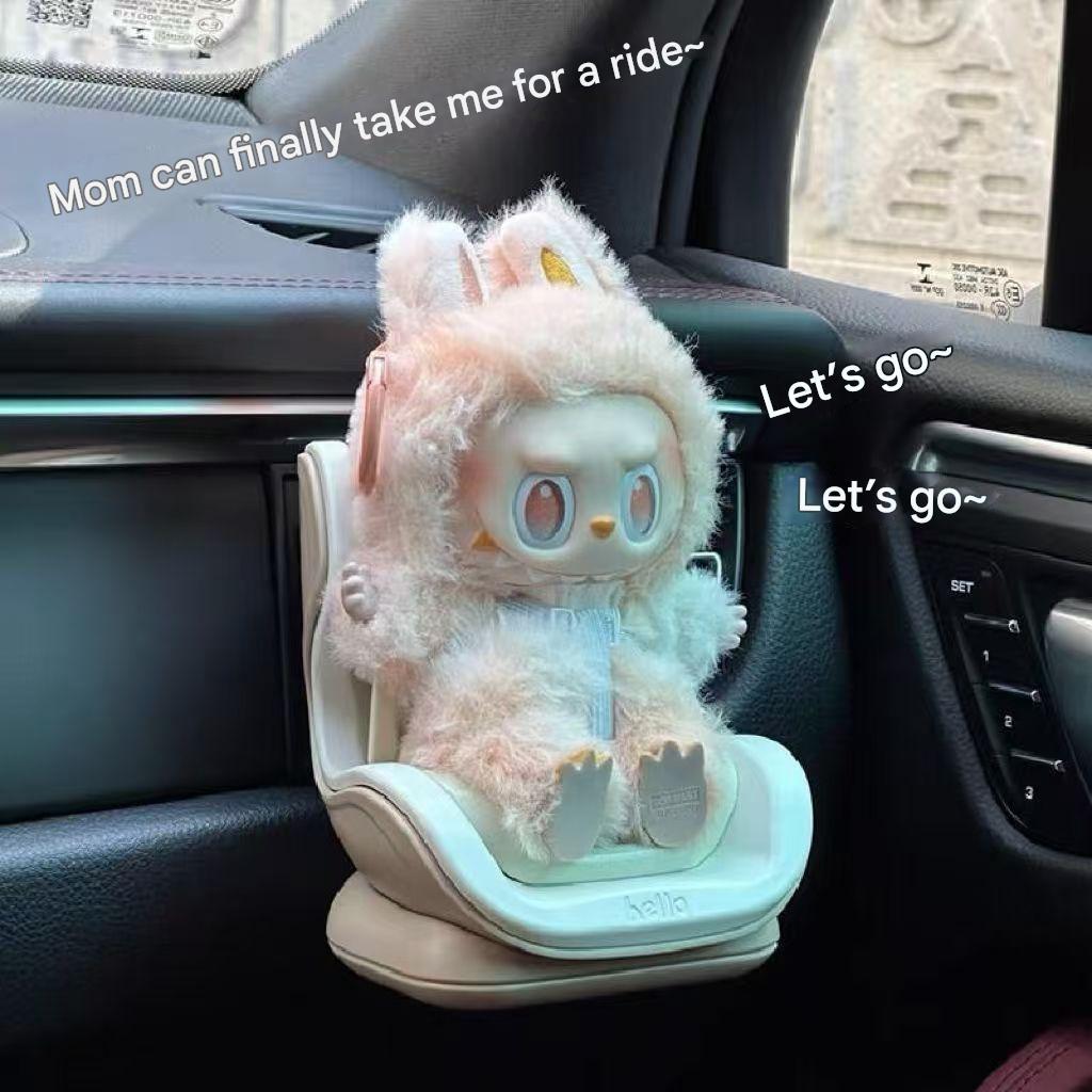 Labubu assento de carro boneca de pelúcia assento de segurança do carro ar condicionado saída de ar ornamentos bonitos