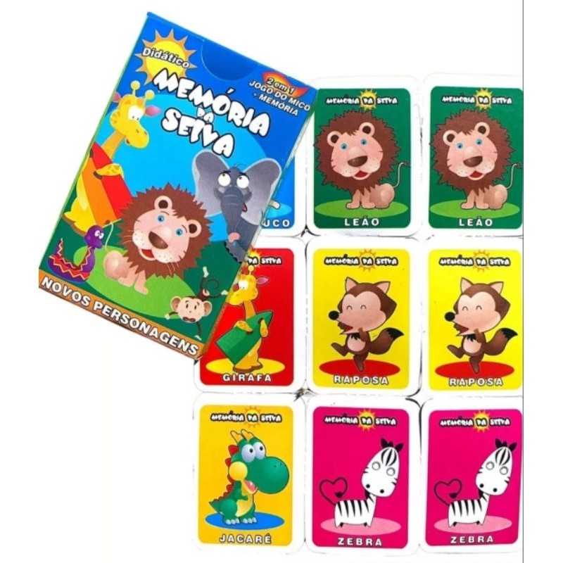 KIT JOGO MEMORIA DA SELVA BRINQUEDO INFANTIL FESTAS TAMANHO DAS CAIXAS 9 CM DE ALTURA 6 CM DE LARGURA 1,5 DE COMPR