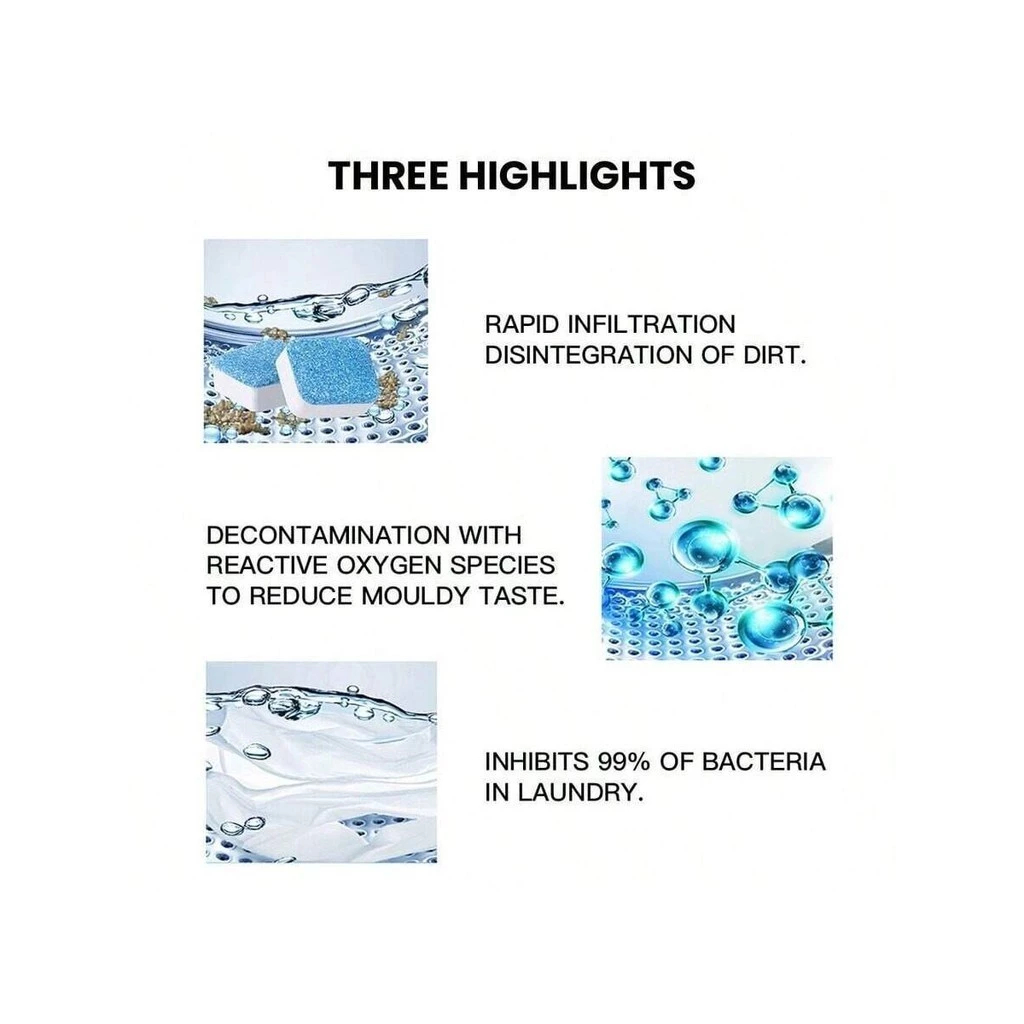 Limpador de máquina de lavar, comprimido efervescente sólido para remover manchas