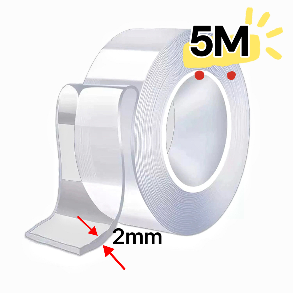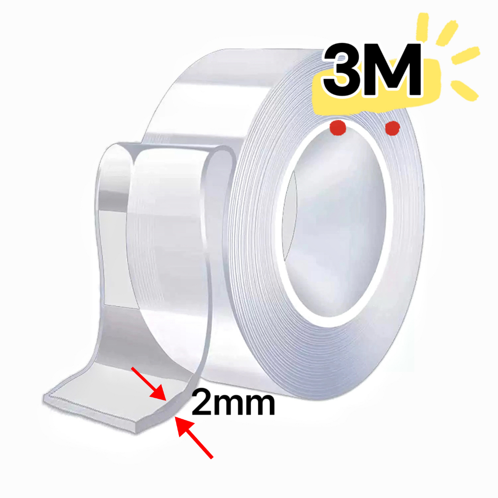 Fita Dupla Face Extra Forte Transparente NanoGel Silicone Mágica Adesiva Cola na Parede Móvel Porta 1M/3M/5M