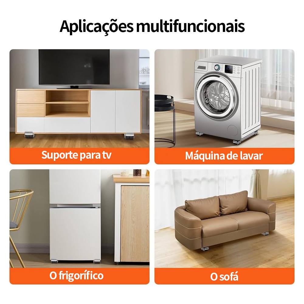 Suporte de Base com Rodinha Geladeira Movedor Móveis Fogāo e Máquina de Lavar Lousa Base Carrinho até 200kg Rodas