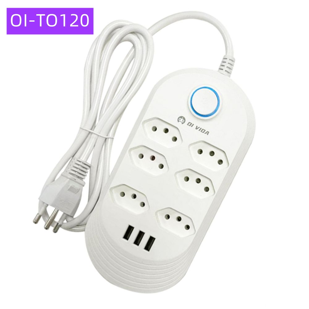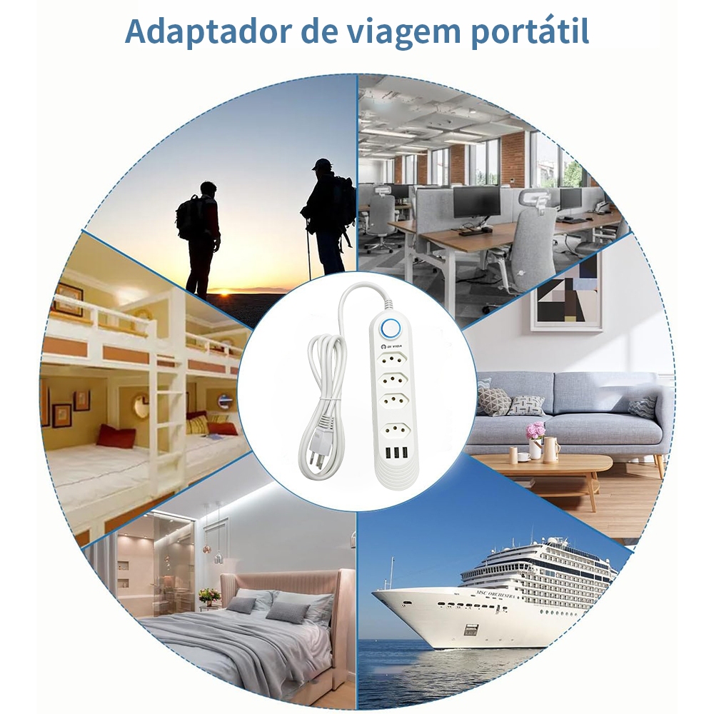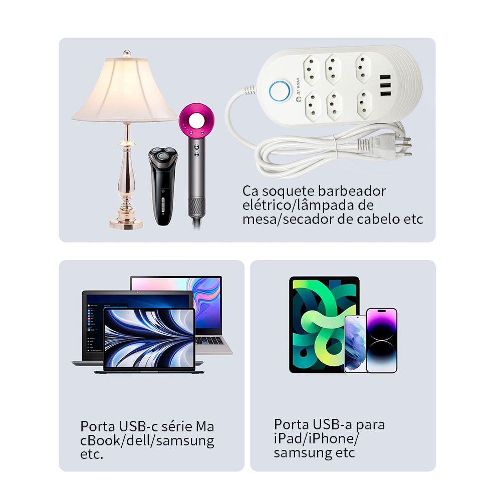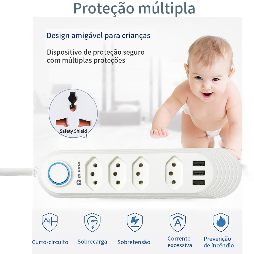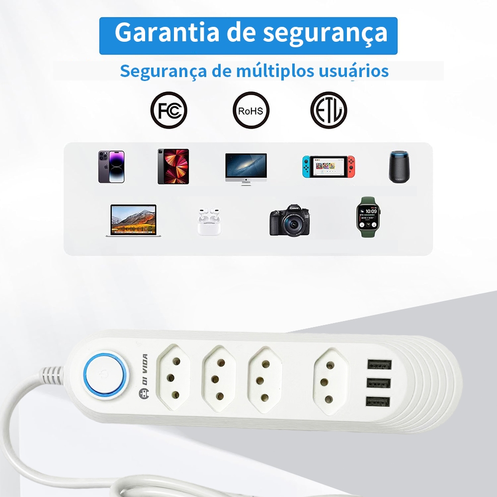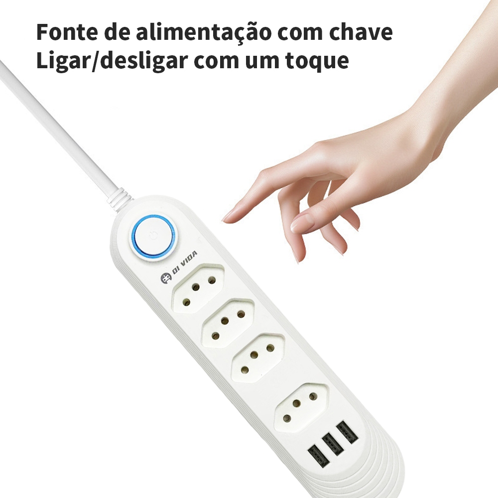 Extensão Elétrica 2m Com 6 Tomadas e 3 Entradas USB com Botão Power Socket 2500W 10A 110v 250v 4 Tomada Filtros de Linha