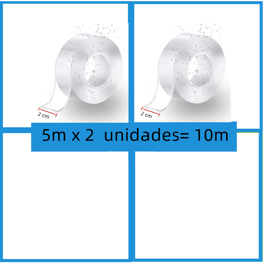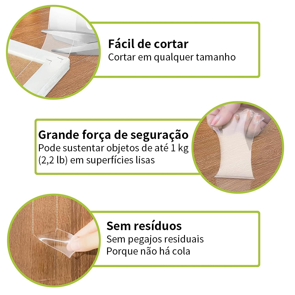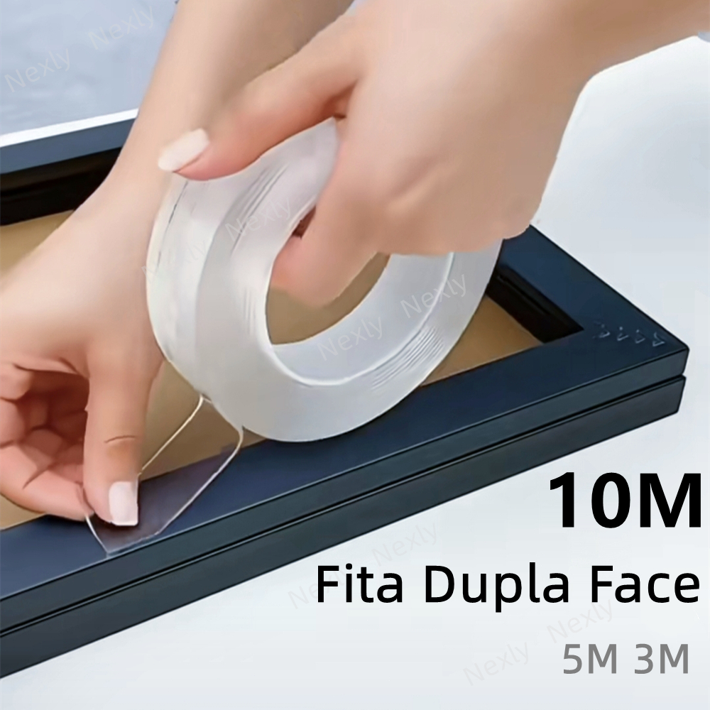Fita Dupla Face Fita Transparente Adesivo 5M 10M Tira Autoadesiva Lavável Gel Adesiva Cola na Parede Espesso NanoGel 3M
