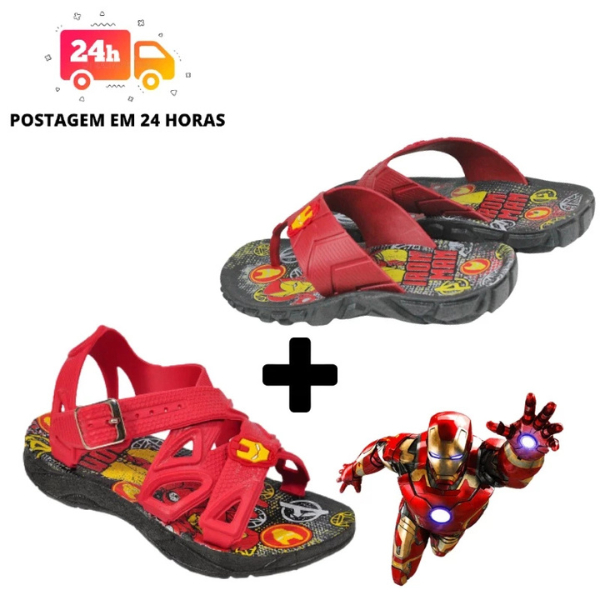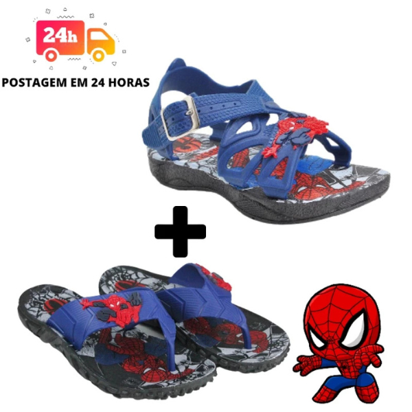 Kit Sandália e Chinelo Infantil Confortável Macio Leve Do 25 ao 32 Personagens Homem Aranha