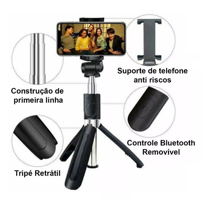 Bastão Pau de Selfie Bluetooth Retrátil suporte tripé para celular Mini 360º Pau De Selfie