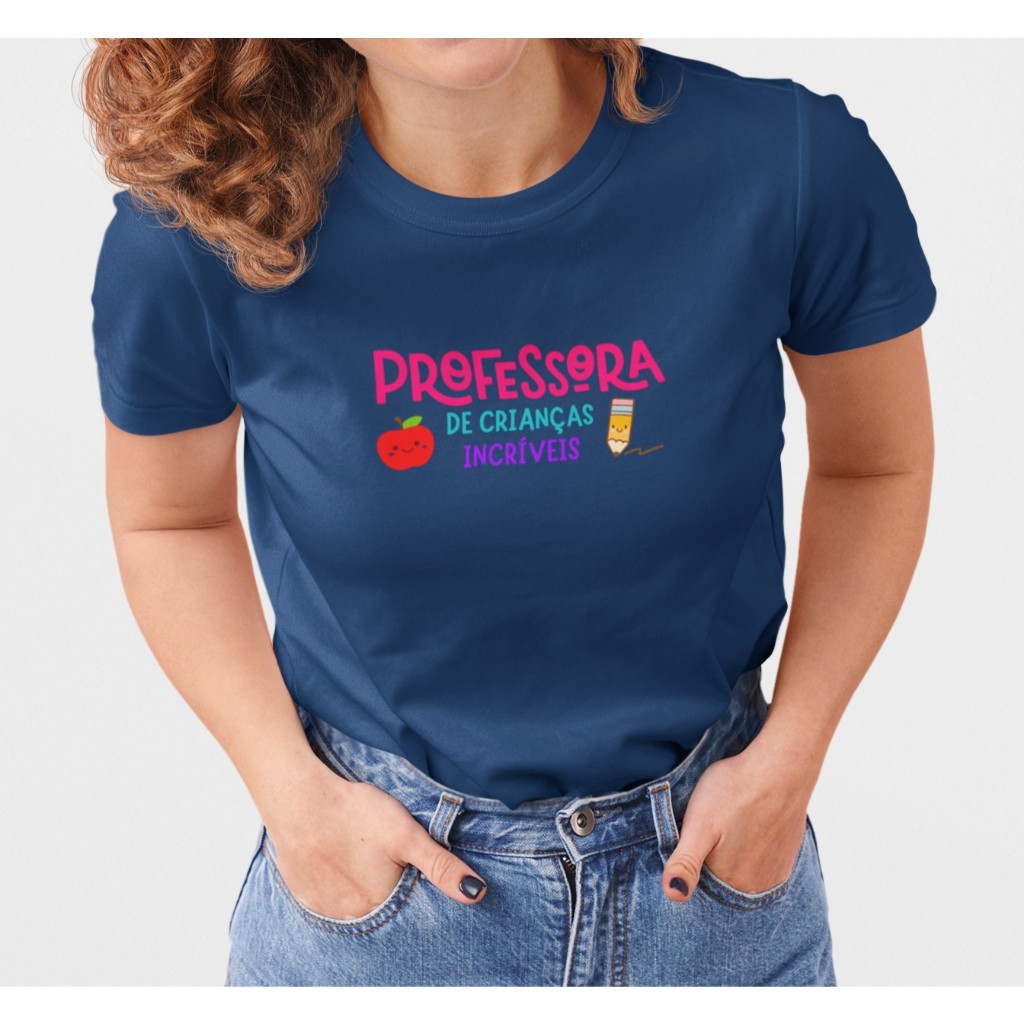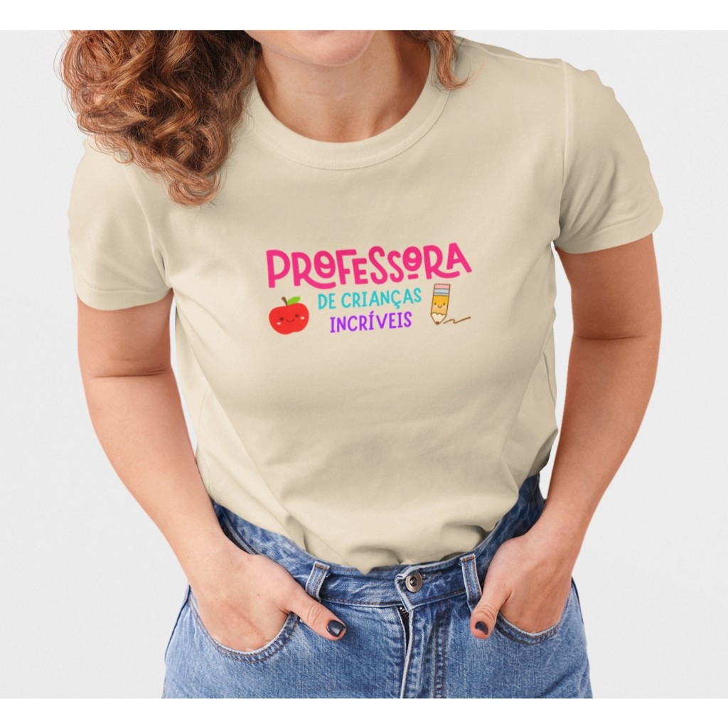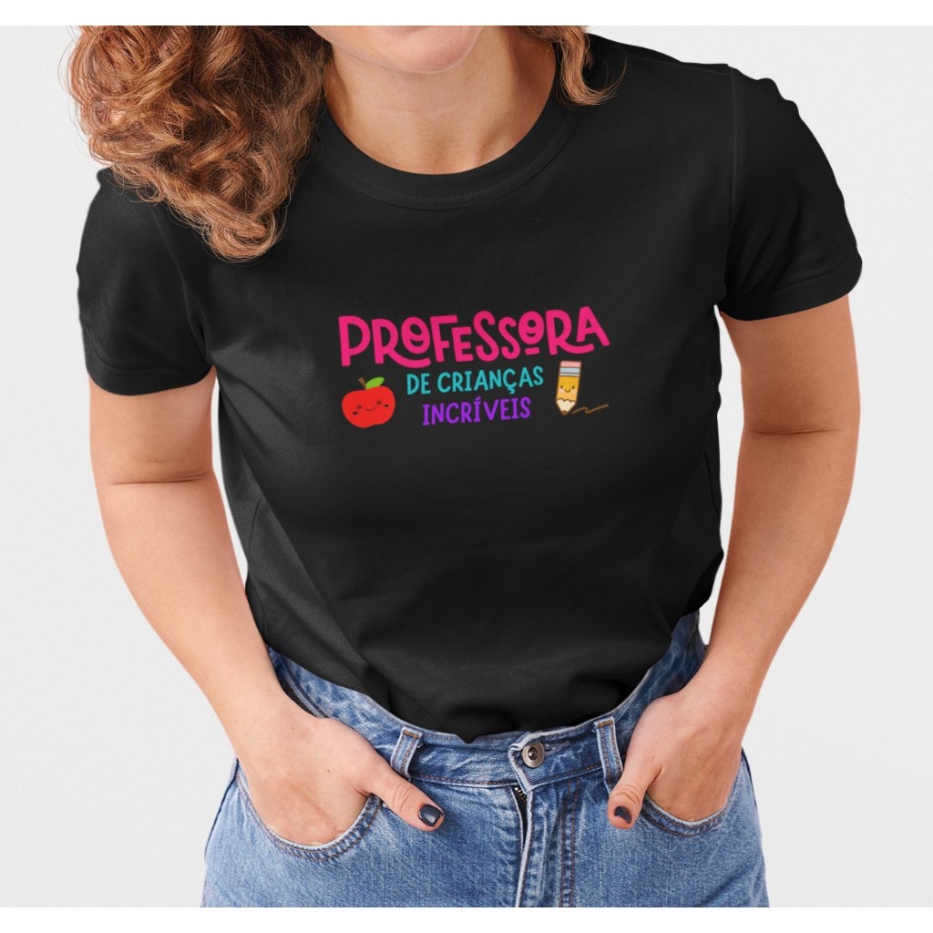 Camiseta Feminina Professora de Crianças Incríveis 100% Algodão Confortável, Moda Casual